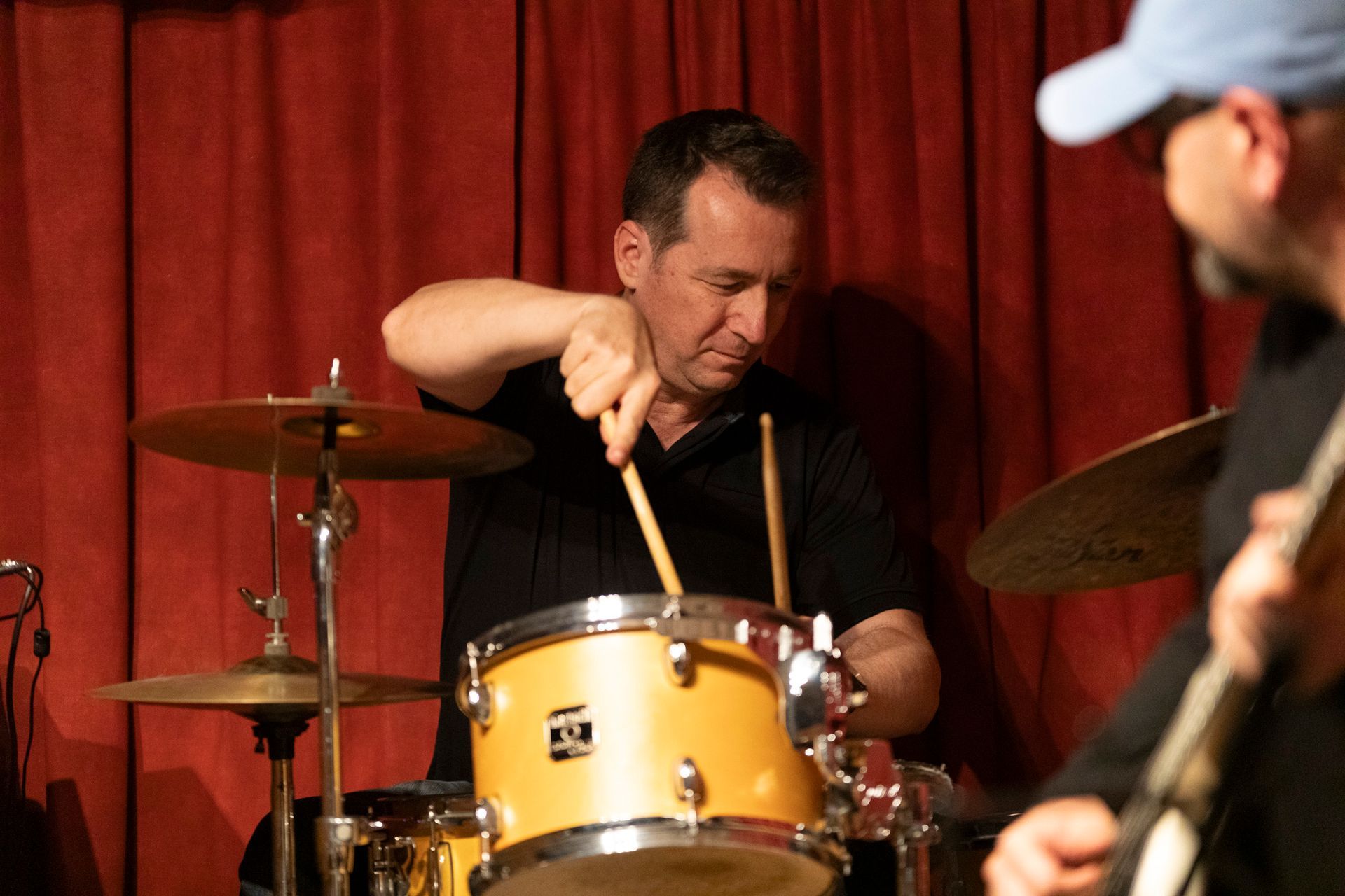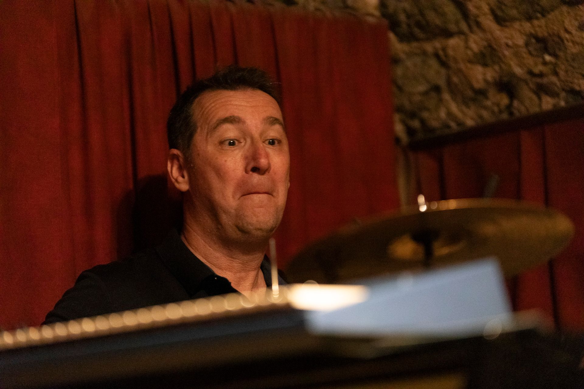 Après le set de la COMPAGNIE SO WHAT, en format quartet, nous avons reçu le ARNOISE JAZZ PROJECT. Depuis plus de 20 ans, Arnoïse, batteur ultra-polyvalent, forme des groupes inédits en s'associant toujours aux meilleurs musiciens de la Côte. Pour cette soirée, avec ses compères Fred D'Oelsnitz au piano et Lasha Lucaselias à la basse, il nous a proposé des compositions jazz funk fusion originales et des reprises revisitées étonnantes et détonantes truffées d’improvisations : Chick Corea, Herbie Hancock, Hendrix, Coltrane, Miles Davis, Stevie Wonder, etc. Quelle soirée encore !