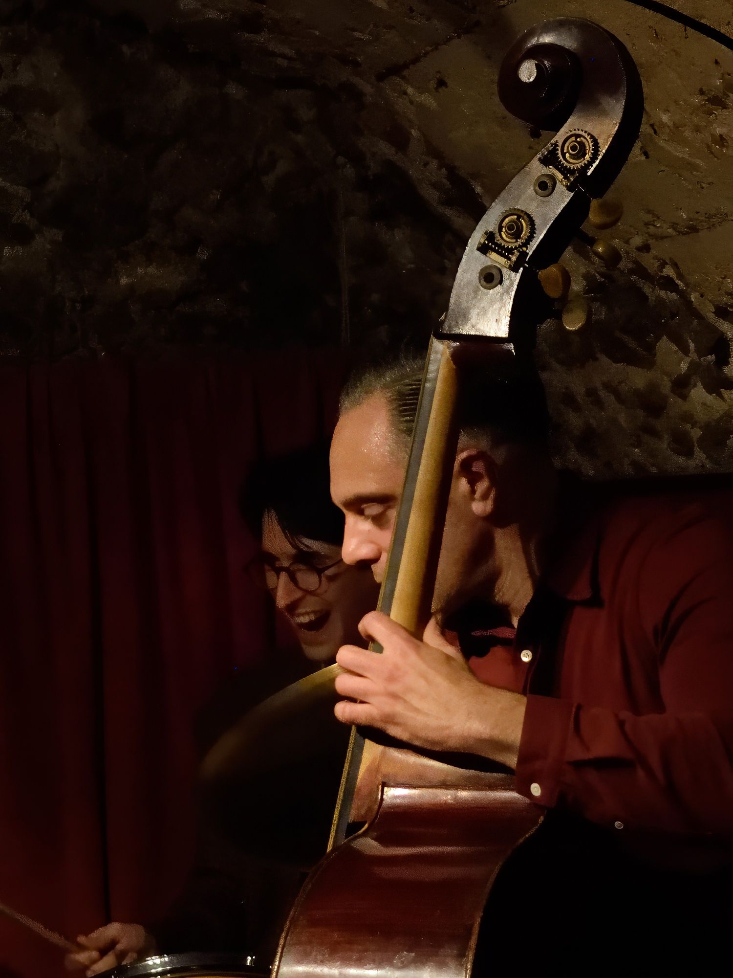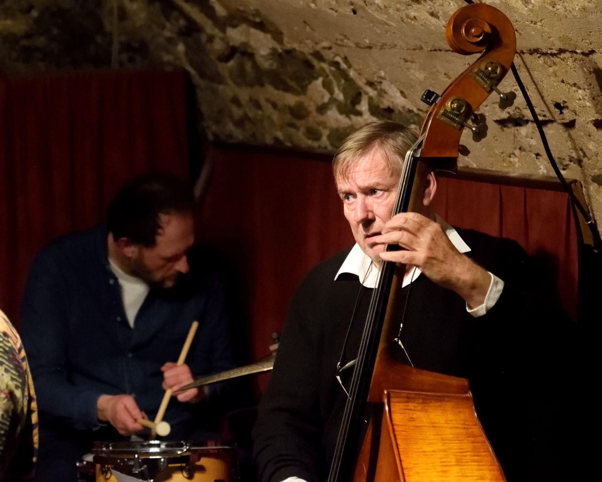 La complicité avec le pianiste-chanteur Claude Tedesco est évidente. Celui-ci escorte avec élégance, son compagnon de route, attentif à explorer intensément les émotions distillées par chaque chanson. Claude Tedesco, Premier Prix du Conservatoire National de Nice, est multi-instrumentiste : nous l'avons reçu comme violoniste au So What, avec le Minor Swing Quartet. C'est en tant que pianiste que nous le retrouvions ici, dans un duo détonnant et passionnant !