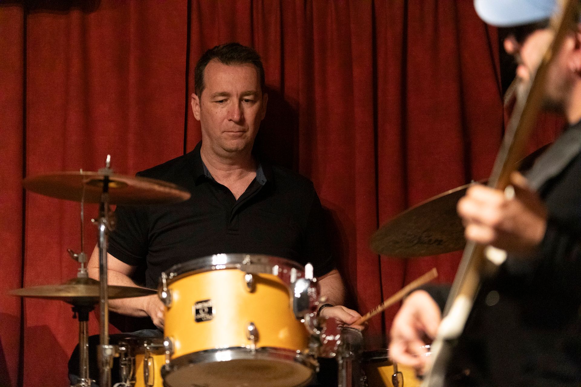 Après le set de la COMPAGNIE SO WHAT, en format quartet, nous avons reçu le ARNOISE JAZZ PROJECT. Depuis plus de 20 ans, Arnoïse, batteur ultra-polyvalent, forme des groupes inédits en s'associant toujours aux meilleurs musiciens de la Côte. Pour cette soirée, avec ses compères Fred D'Oelsnitz au piano et Lasha Lucaselias à la basse, il nous a proposé des compositions jazz funk fusion originales et des reprises revisitées étonnantes et détonantes truffées d’improvisations : Chick Corea, Herbie Hancock, Hendrix, Coltrane, Miles Davis, Stevie Wonder, etc. Quelle soirée encore !