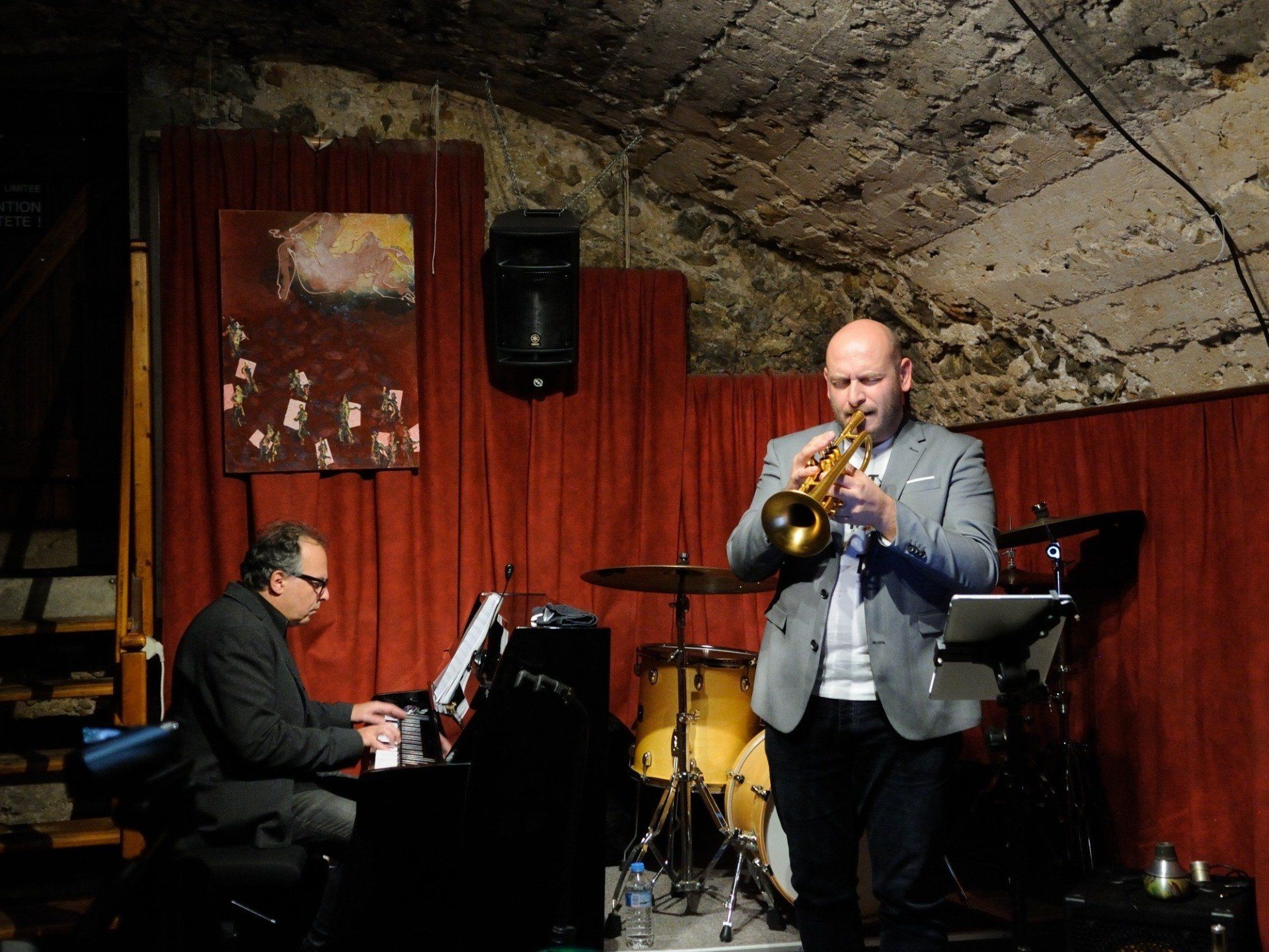 Malgré les trombes d'eau qui s'abattaient sur La Gaude et les annonces alarmistes de la météo, une poignée de fidèles avaient bravé les intempéries pour venir jusqu'au So What, ce jeudi 14 novembre. Ils n'ont pas été déçus ! Comme souvent, dans des conditions difficiles, une ambiance particulièrement conviviale et festive s'est créée et l'osmose entre les musiciens et le public a été totale. Le duo de la trompette de Marco Vezzoso et du piano d'Alessandro Collina, tout juste rentré de Chine, nous a offert les mélodies italiennes tendres et joyeuses issues de leur dernier album. Ensuite, le quartet Looking Up a rendu un hommage chaleureux et dynamique à Michel Petrucciani, disparu voici trente ans... Le public, aux anges, en a redemandé.