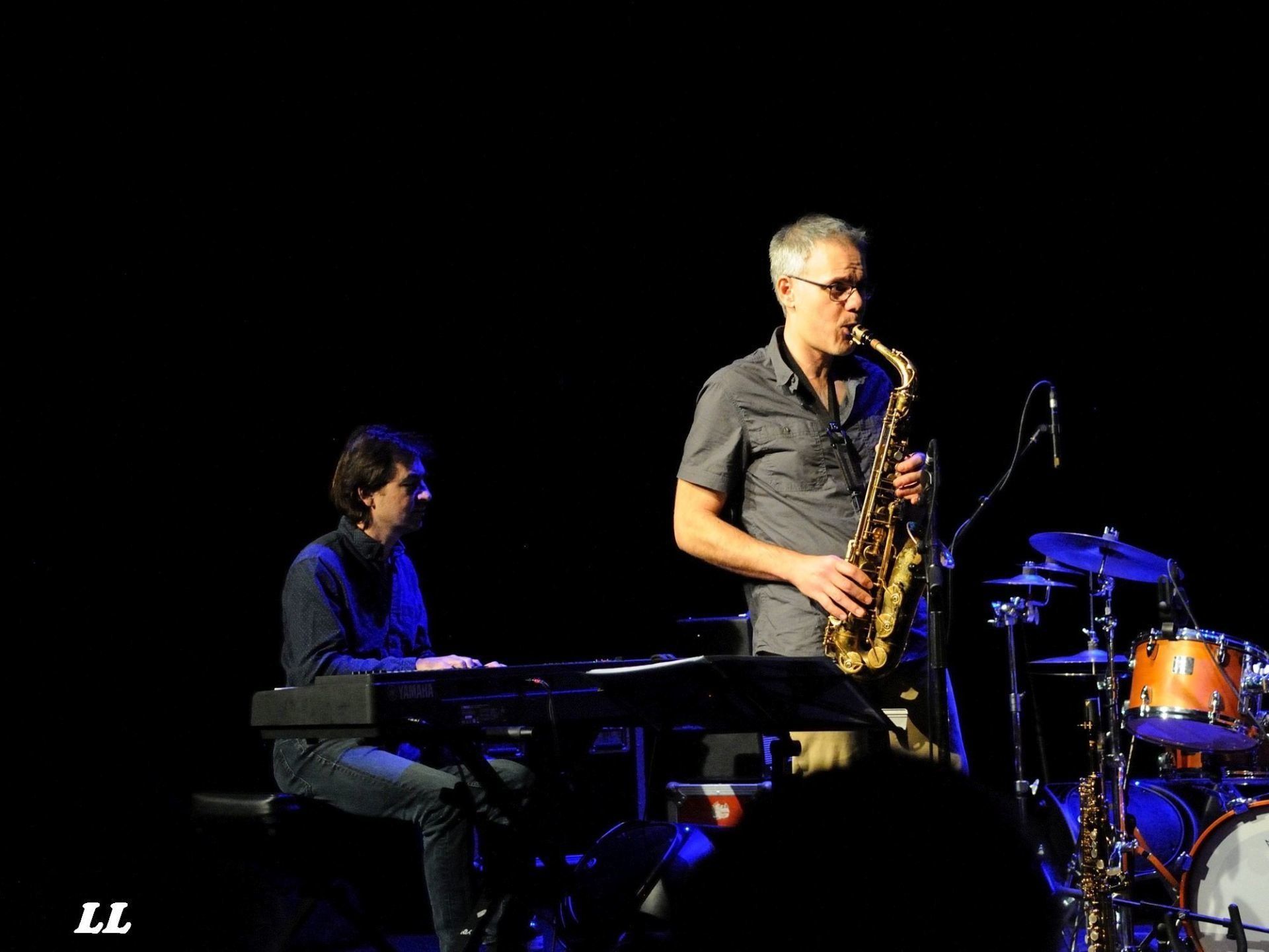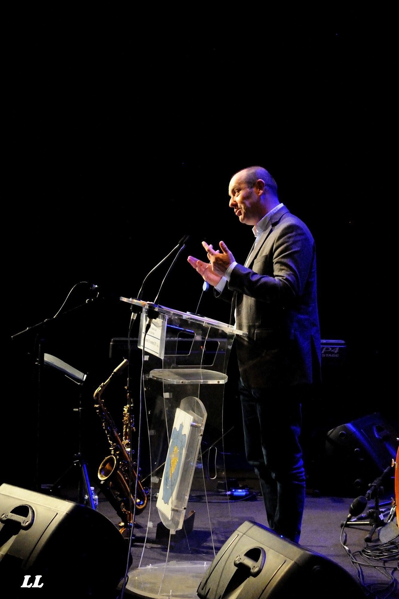 Quelques moments de pause ensuite, pendant que la "balance" battait son plein dans la grande salle, en prévision du concert du soir. Celui-ci, à guichets fermés, allait démarrer par un set de la Compagnie So What, au mieux de sa forme (photos ICI). Après l'entracte, où les spectateurs ont pu déguster champagne ou café au profit de la caisse des écoles de La Gaude, le Sand Quintet d'Henri Texier nous a offert un concert d'exception, où la virtuosité et la sureté technique des musiciens s'est effacée devant le punch et une profonde émotion, tout en partage entre artistes et publics (photos ICI).