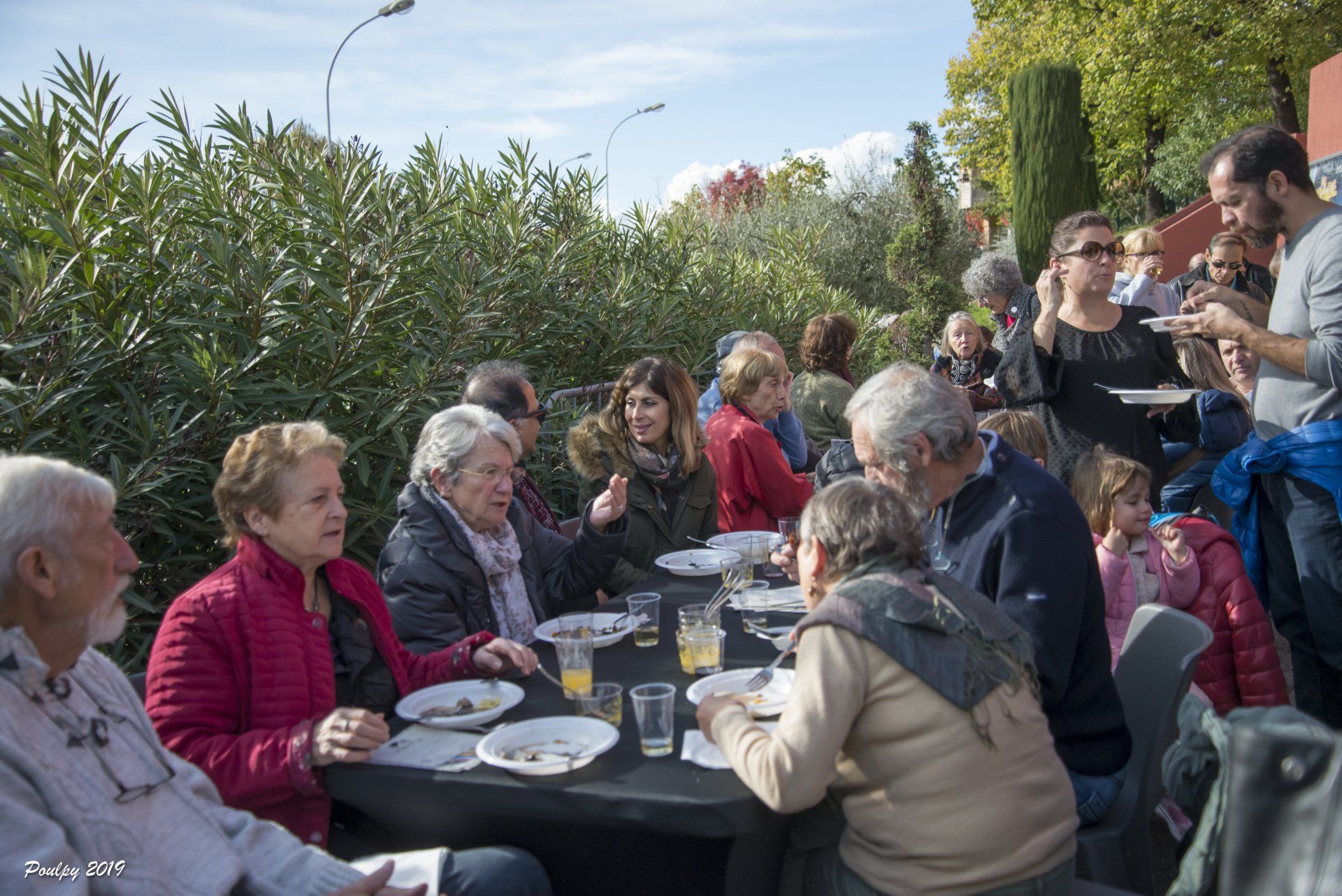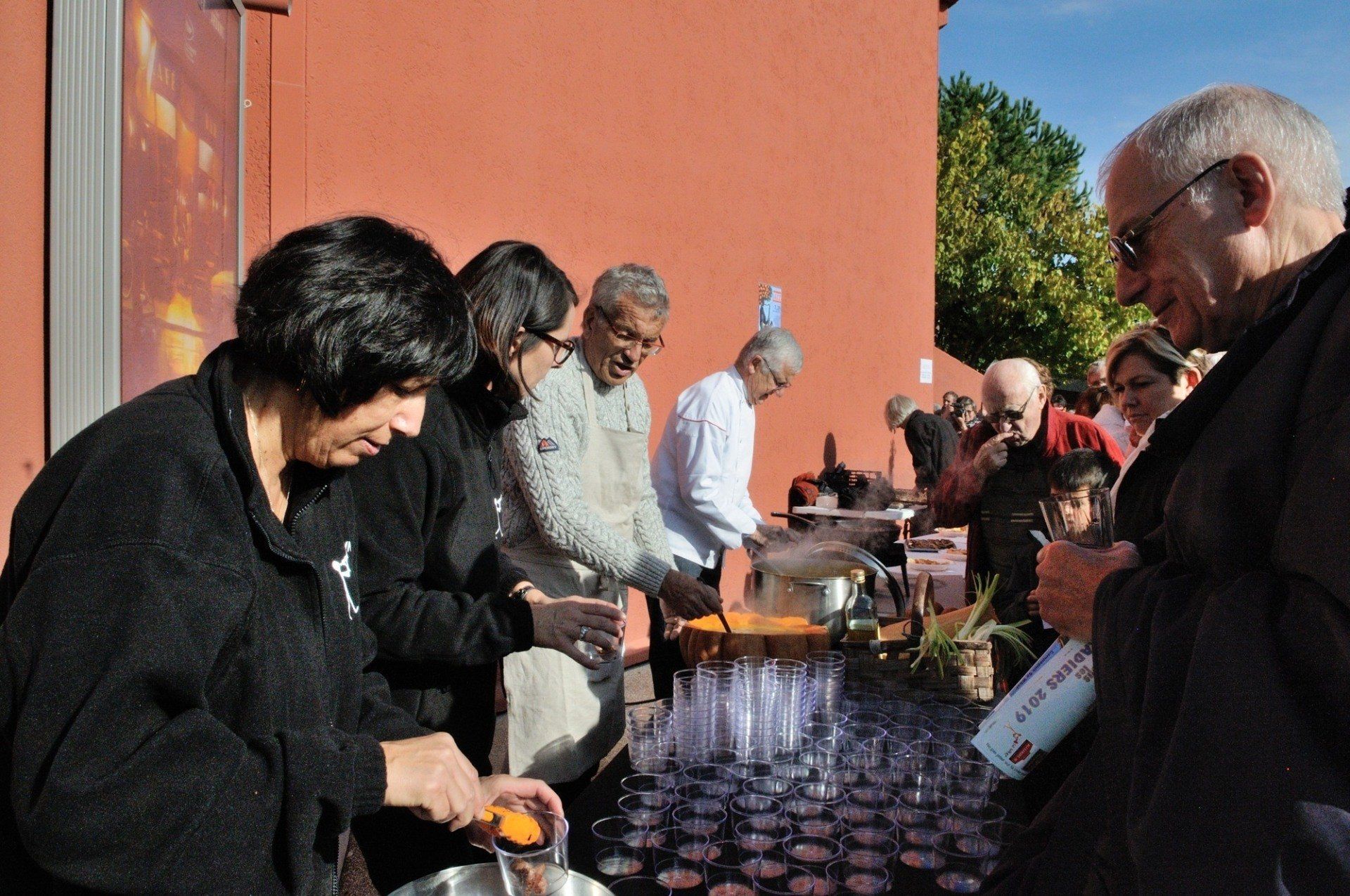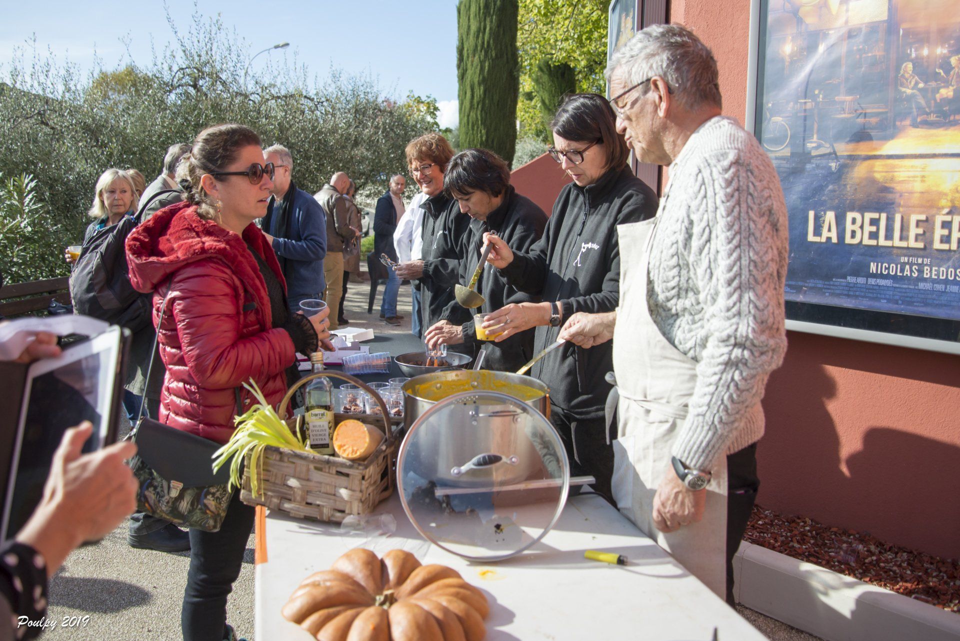 Et ce n'était que le début : s'ensuivit, sous un soleil radieux et complice, un "apéritif déjeunatoire" offert à ceux qui avaient eu la bonne idée de réserver, avec dégustation de la soupe de courge aux pérugines, concoctée par les cuisiniers, de la pissaladière savoureuse du domaine de l'Etoile et de succulents raviolis à la daube. Que demande le peuple ? (photos ICI).