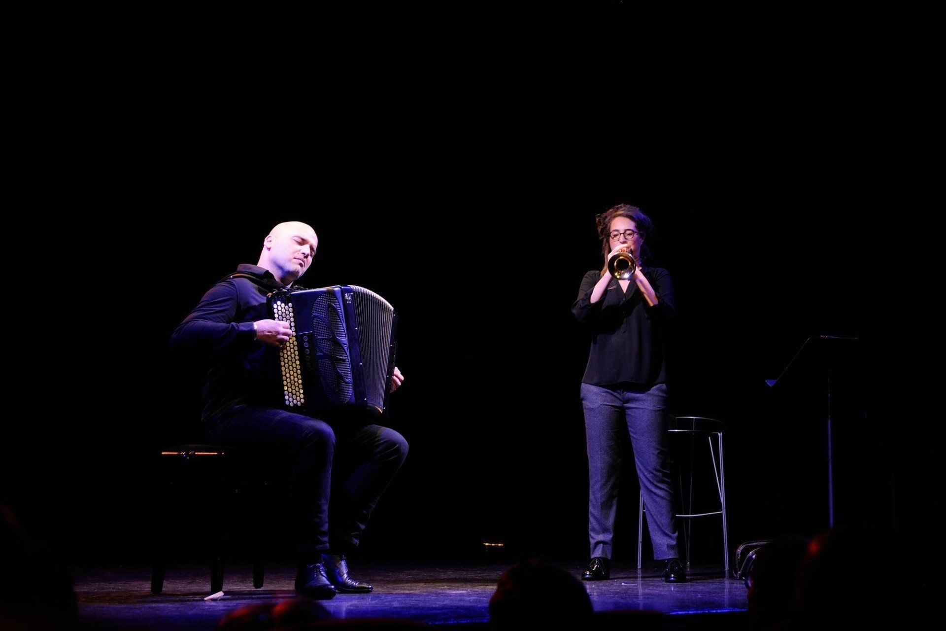 Le Théâtre Alexandre III de Cannes recevait, le 7 novembre, le duo de la trompettiste Airelle BESSON et de l'accordéoniste Lionel SUAREZ.