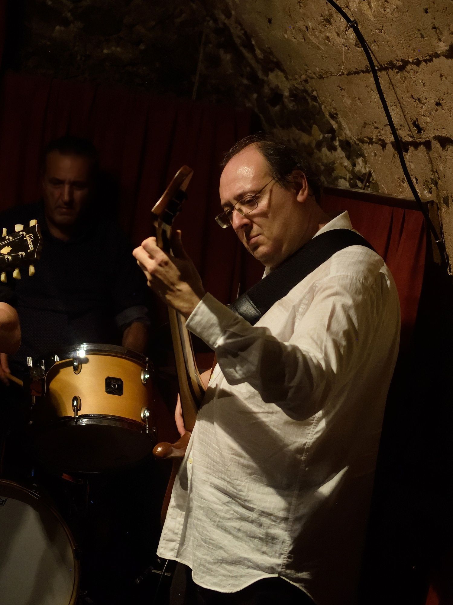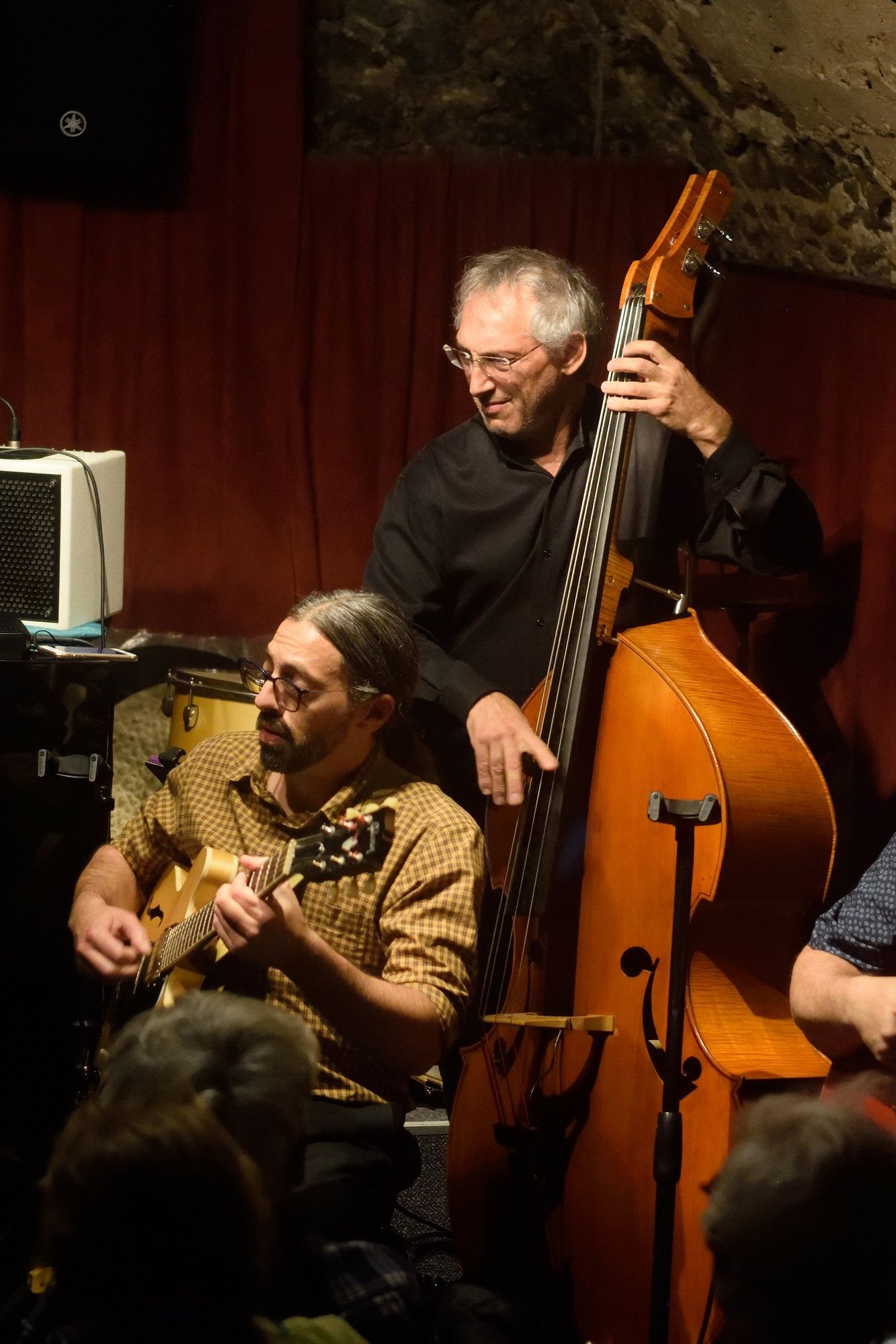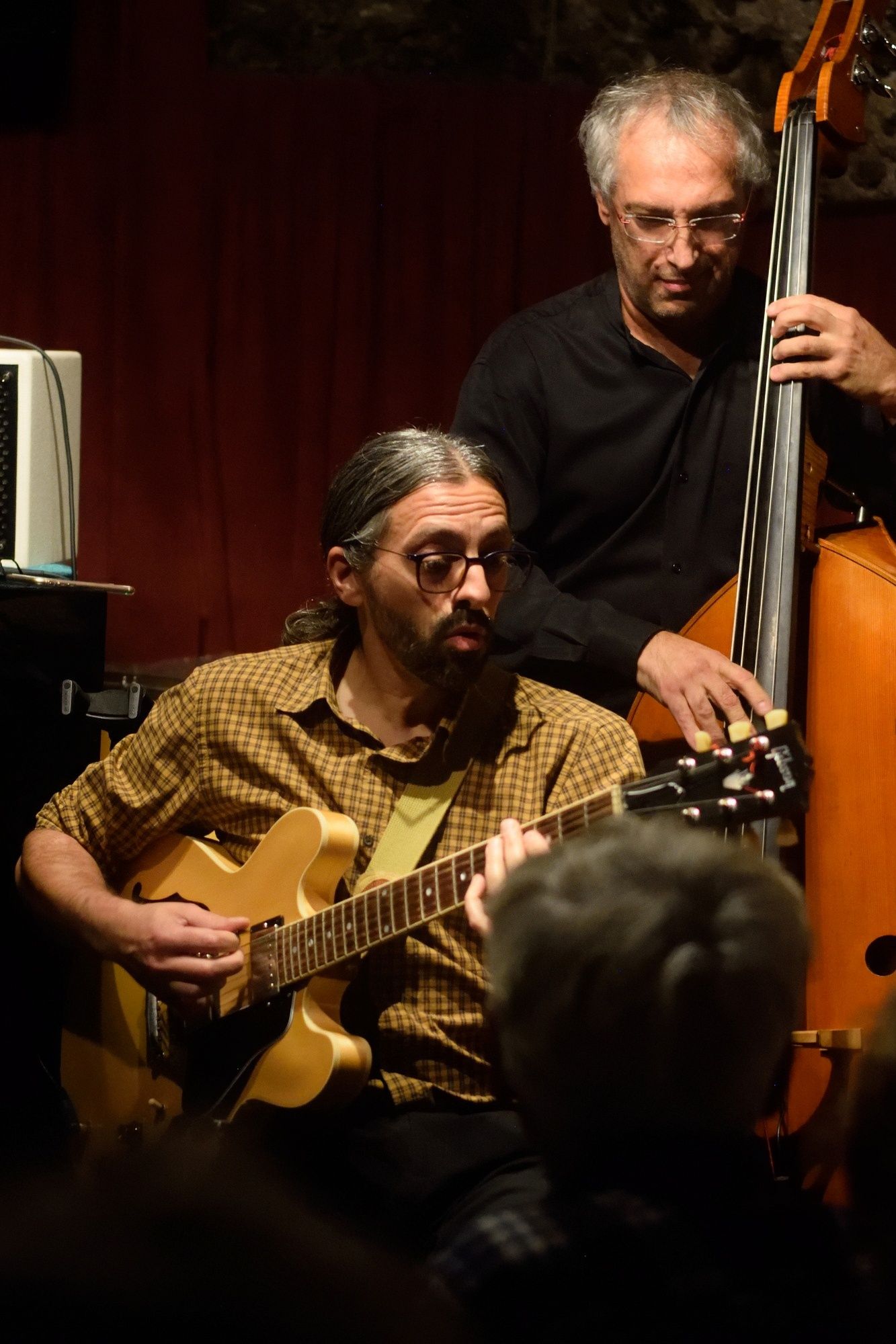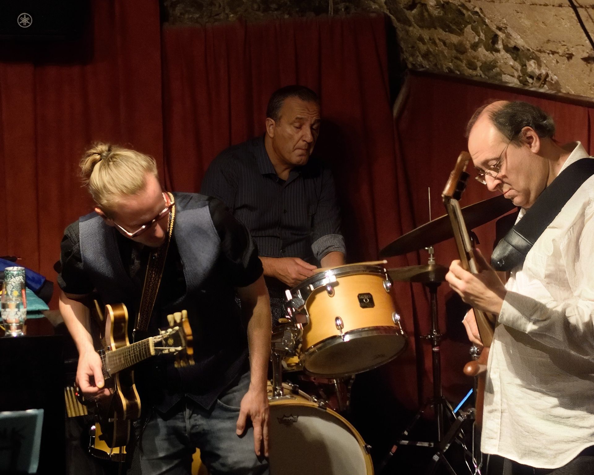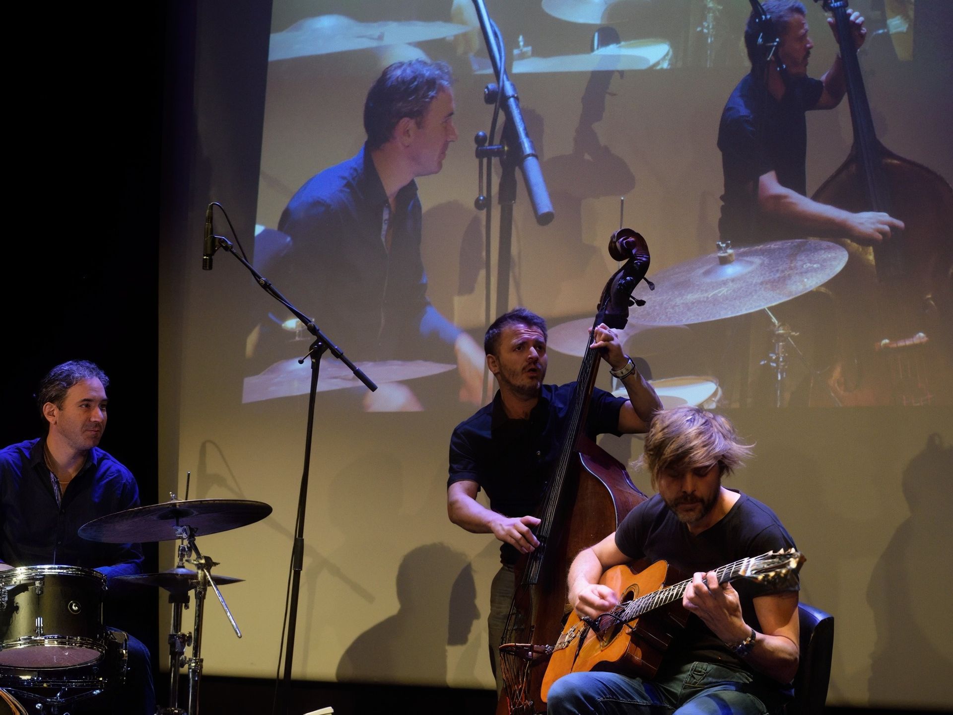 Les musiciens du trio du guitariste Pierre Bertrand (avec Sofian El Mabrouk à la contrebasse et Jérôme Achat à la batterie) nous ont offert un set à la fois intense, profond et intimiste. Une bien belle musique, avec des compos et des reprises très personnalisées, qui a conquis un public aux anges.