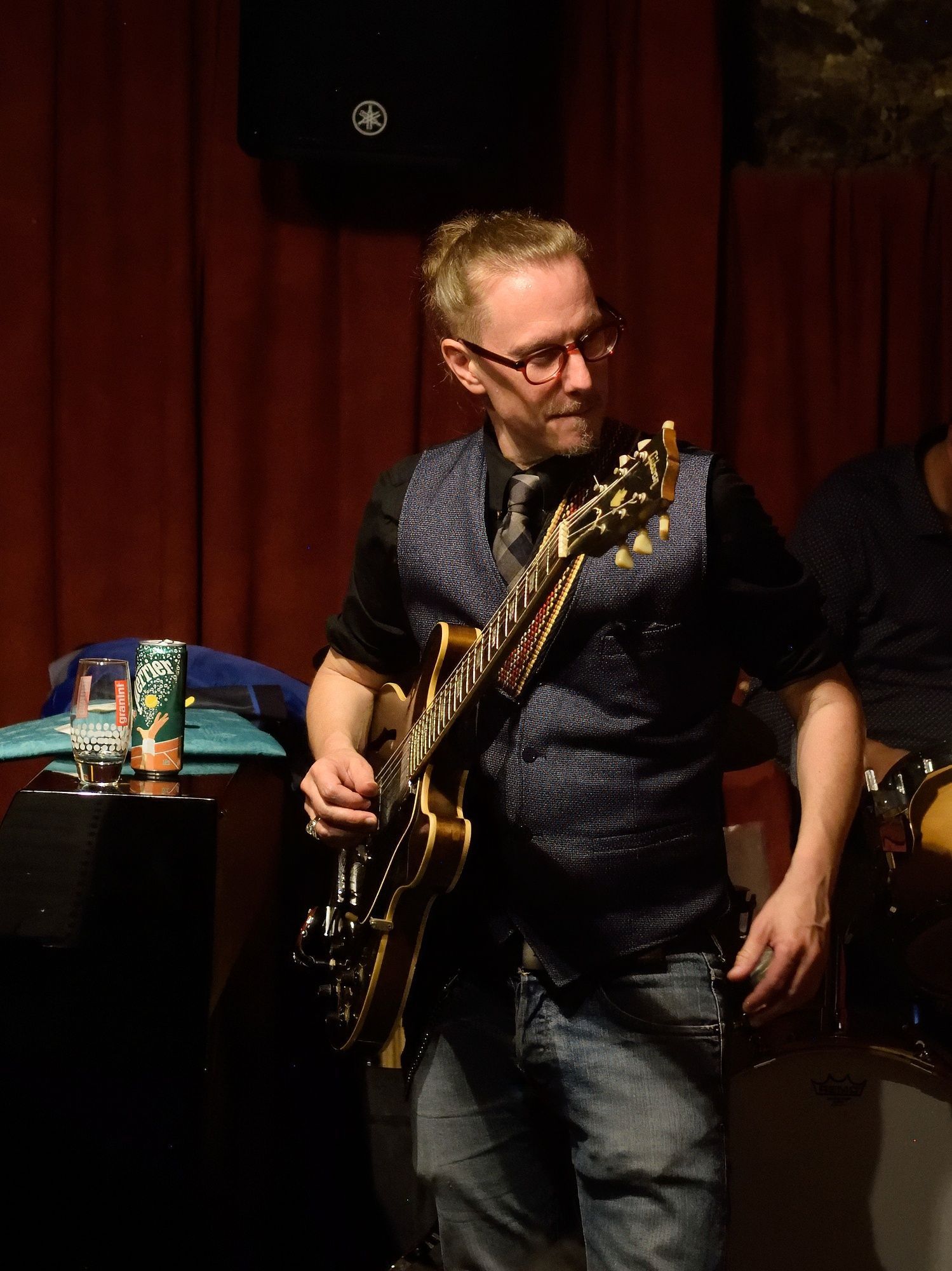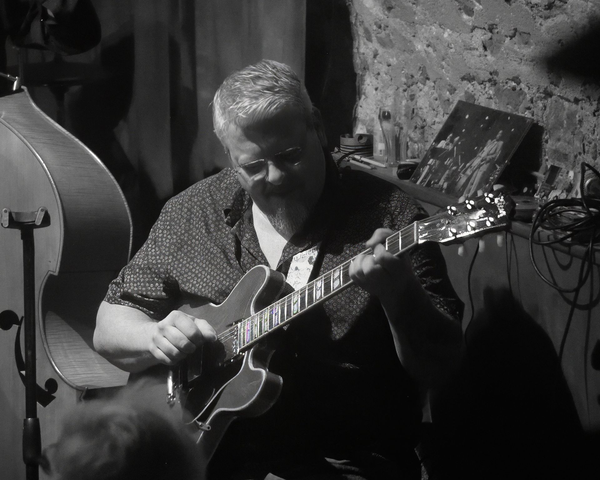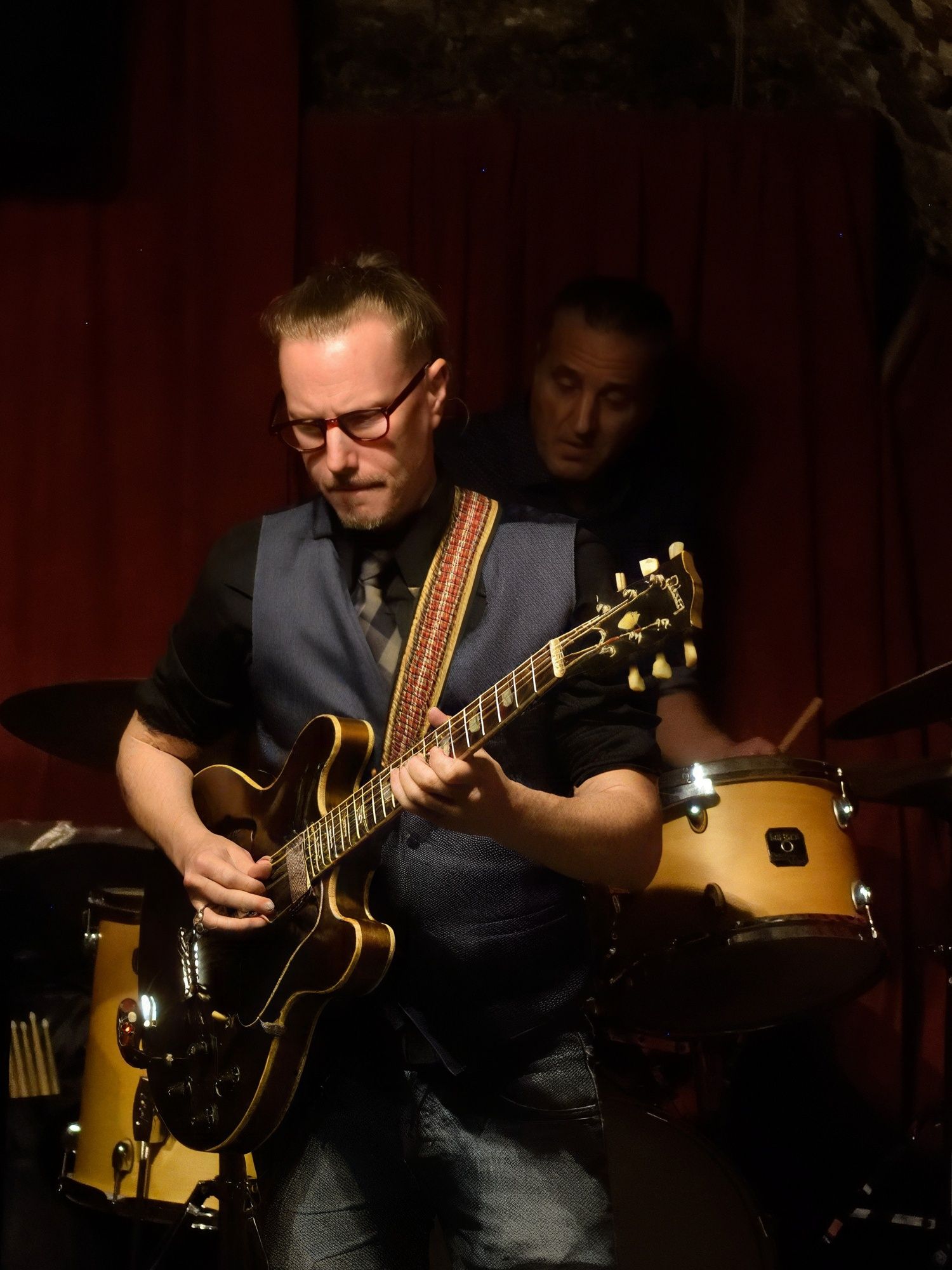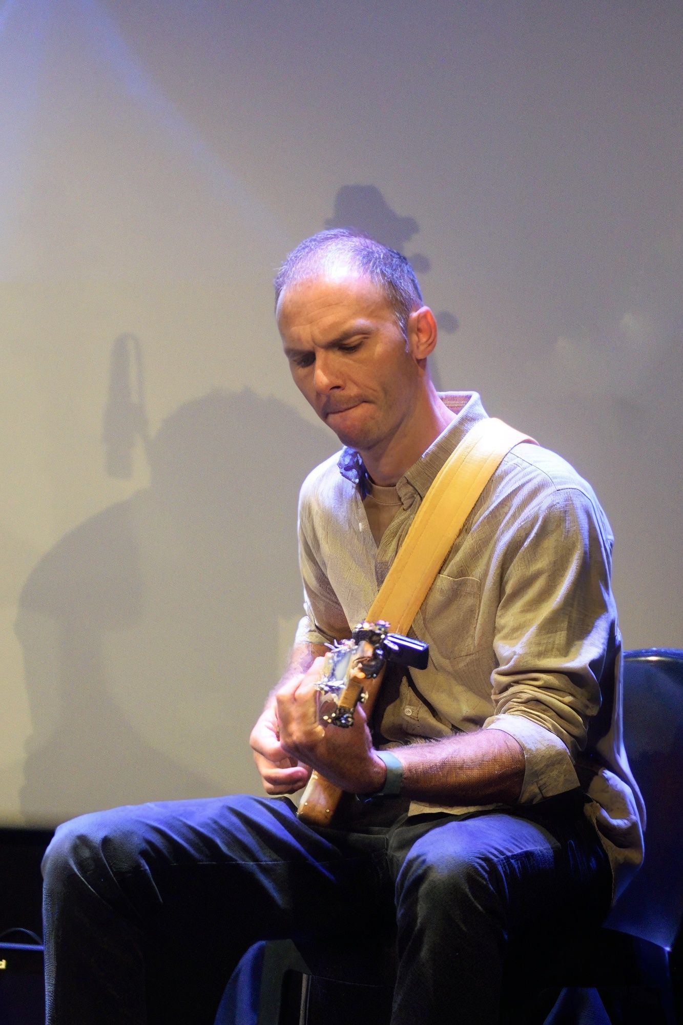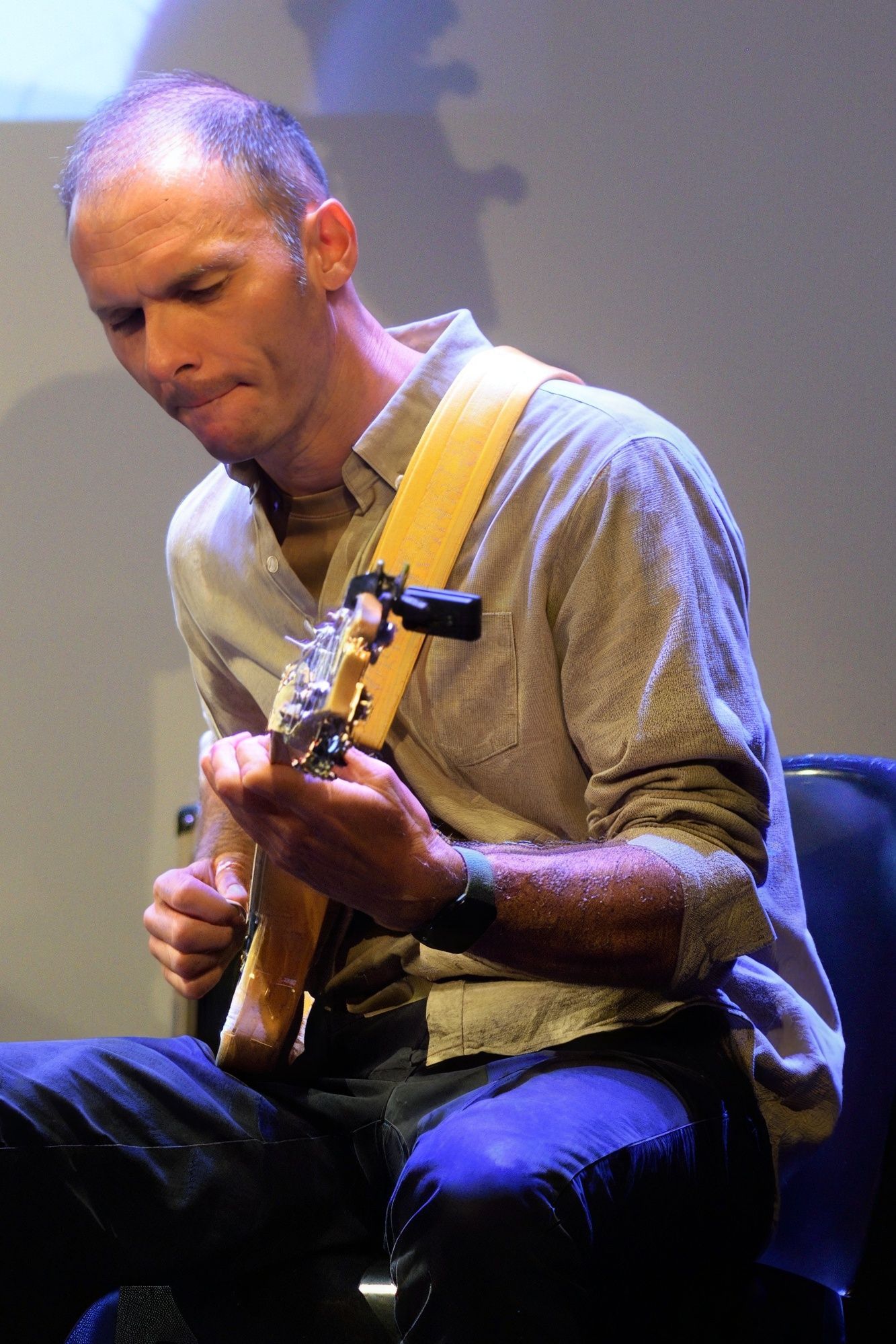 Les musiciens du trio du guitariste Pierre Bertrand (avec Sofian El Mabrouk à la contrebasse et Jérôme Achat à la batterie) nous ont offert un set à la fois intense, profond et intimiste. Une bien belle musique, avec des compos et des reprises très personnalisées, qui a conquis un public aux anges.