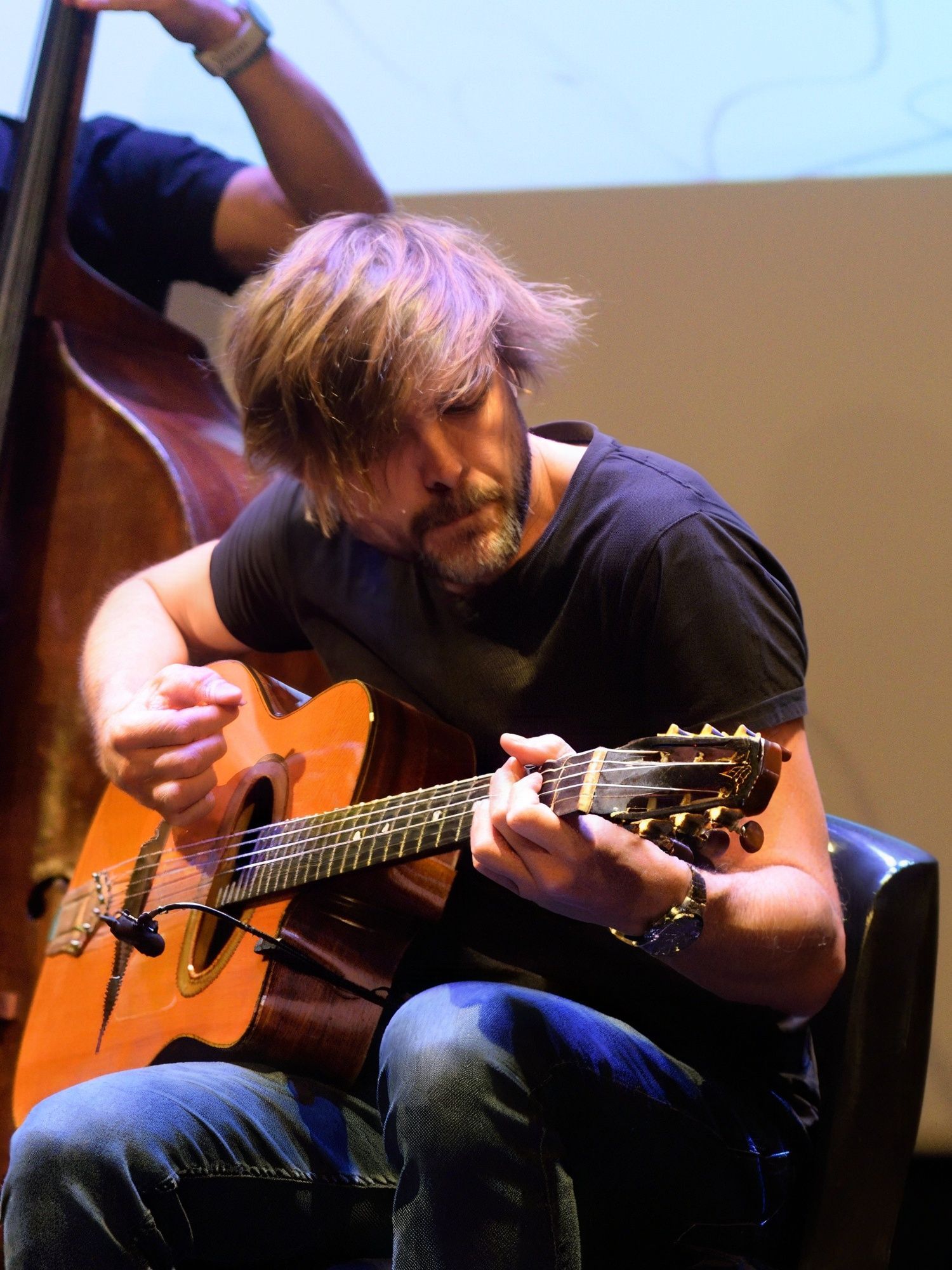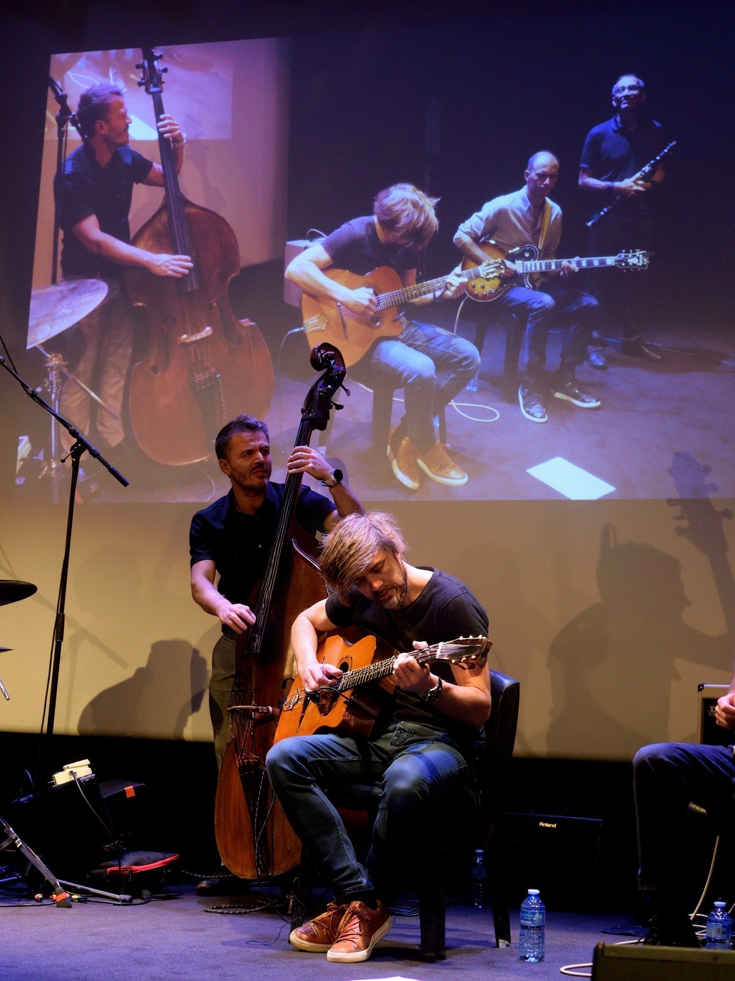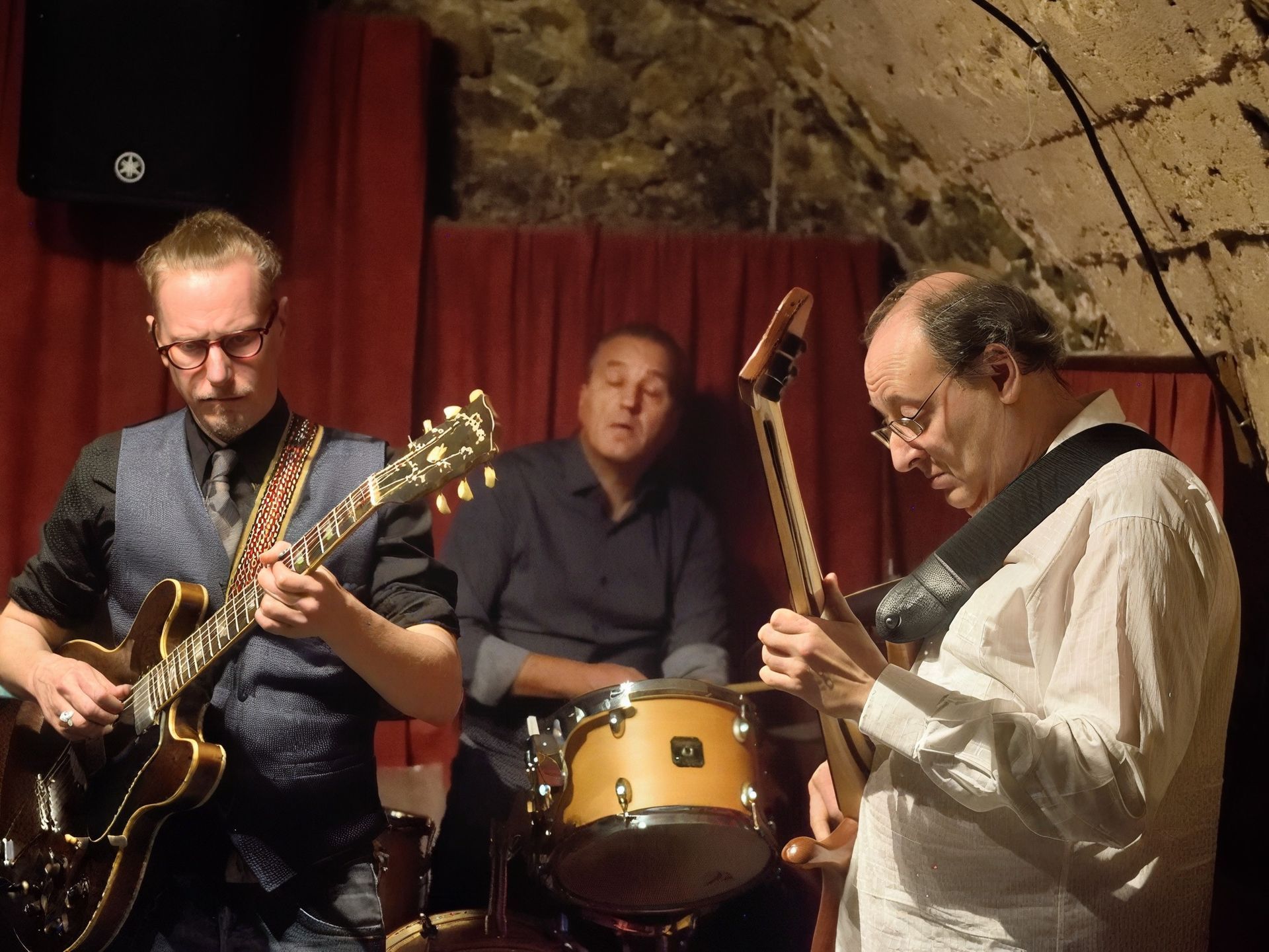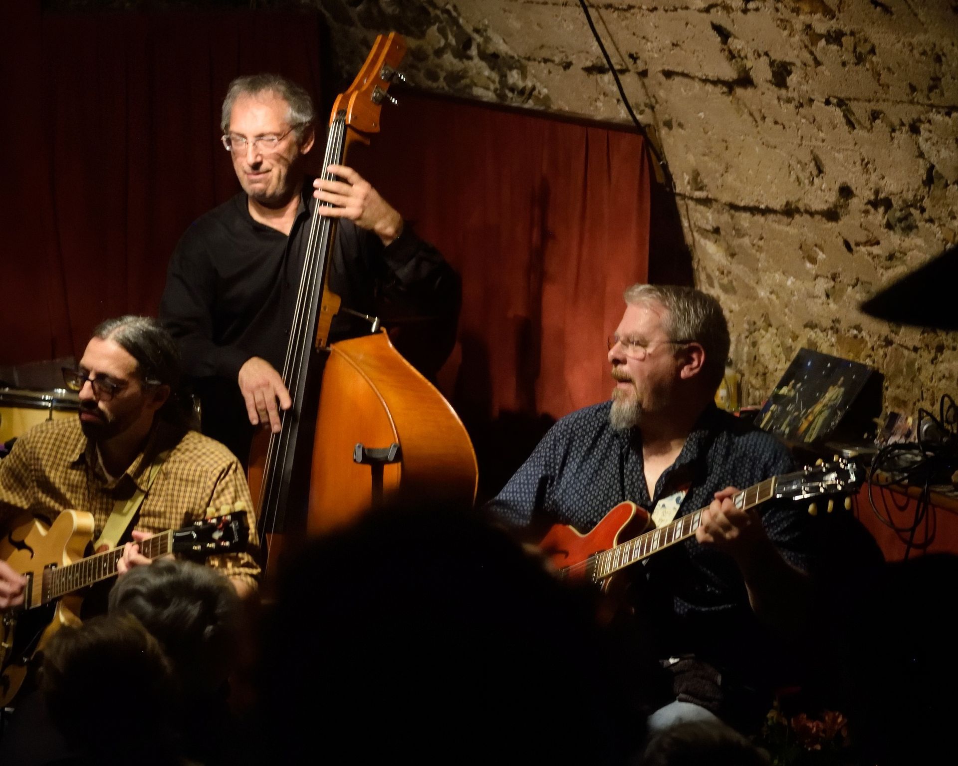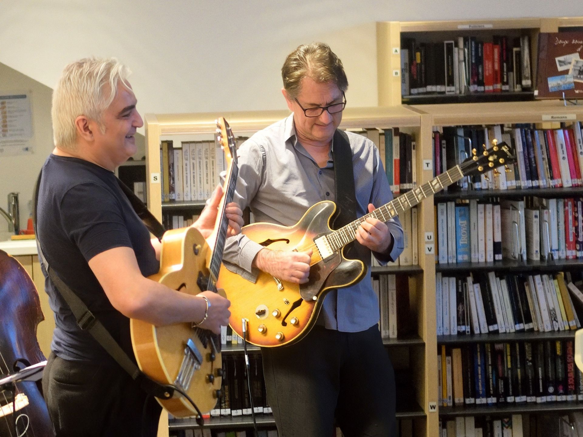 Le vendredi 8 novembre, le TRIO DE LUC FENOLI (Luc Fenoli, guitare; Amaury Filliard, guitare; Christian Pachiaudi, contrebasse) était à la Médiathèque de La Gaude, pour un concert chaleureux, dans une belle ambiance cabaret. Un moment savoureux, avec de super musiciens !