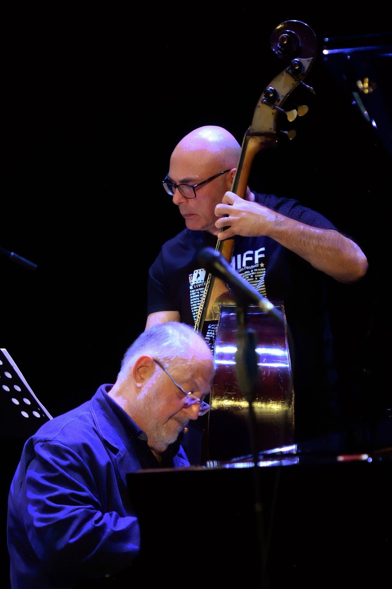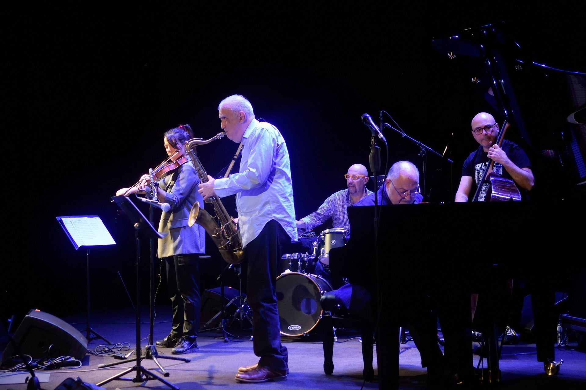 En première partie, le QUINTET "TYNERLY" DE LUIGI BONAFEDE (Luigi Bonafede, piano; Cécile Delzant, violon; Franck Taschini, sax; Simone Monnanni, contrebasse; Enzo Zirilli, batterie) ouvrait le concert, avec un hommage à McCoy Tyner. Une musique passionnante, livrée par des musiciens de haut vol et inspirés. Superbe !