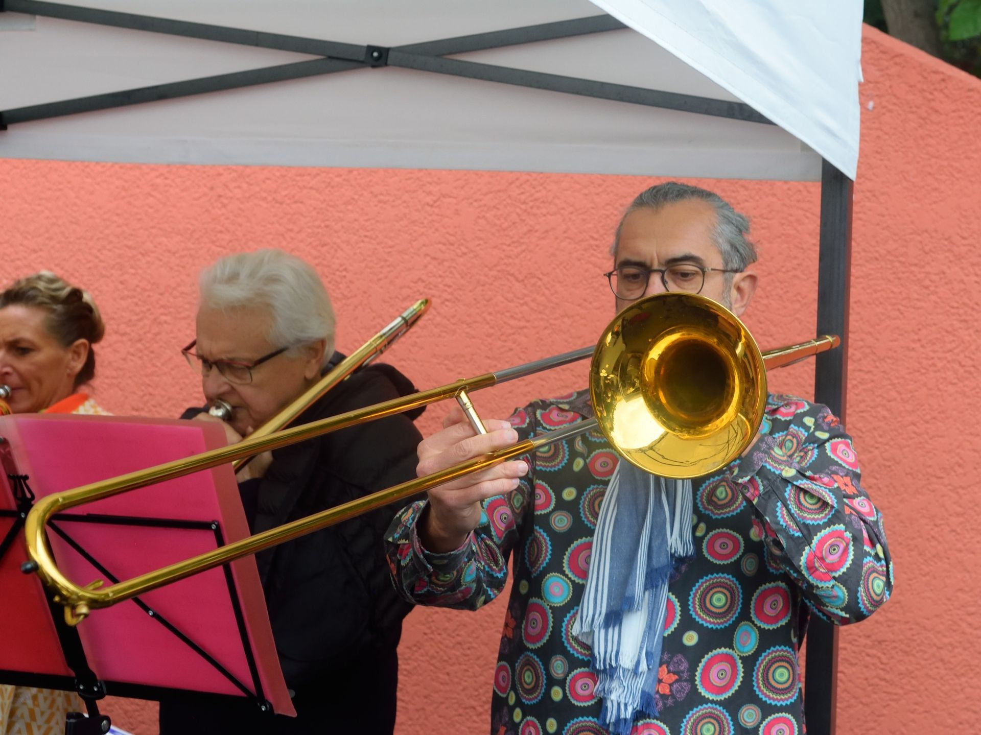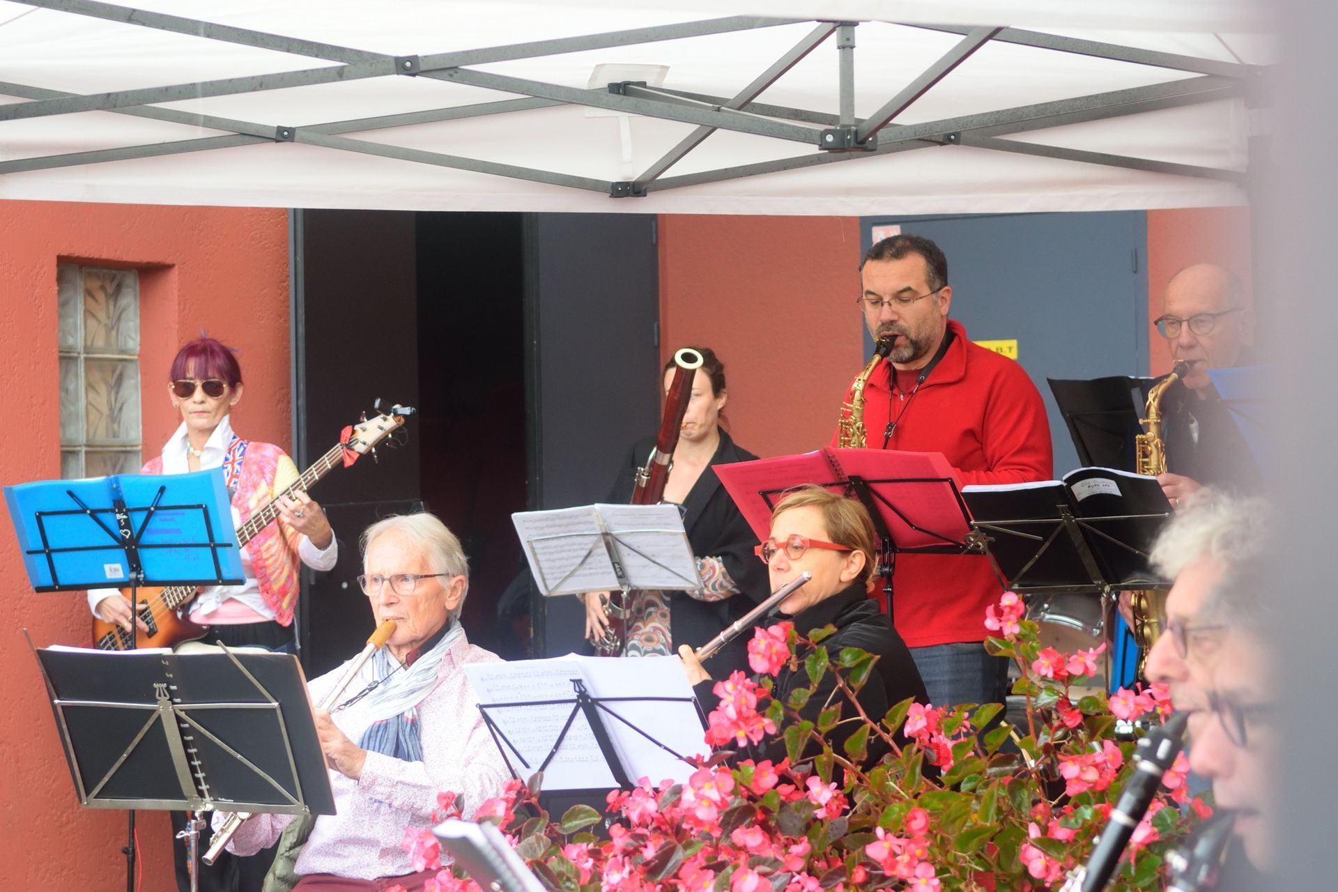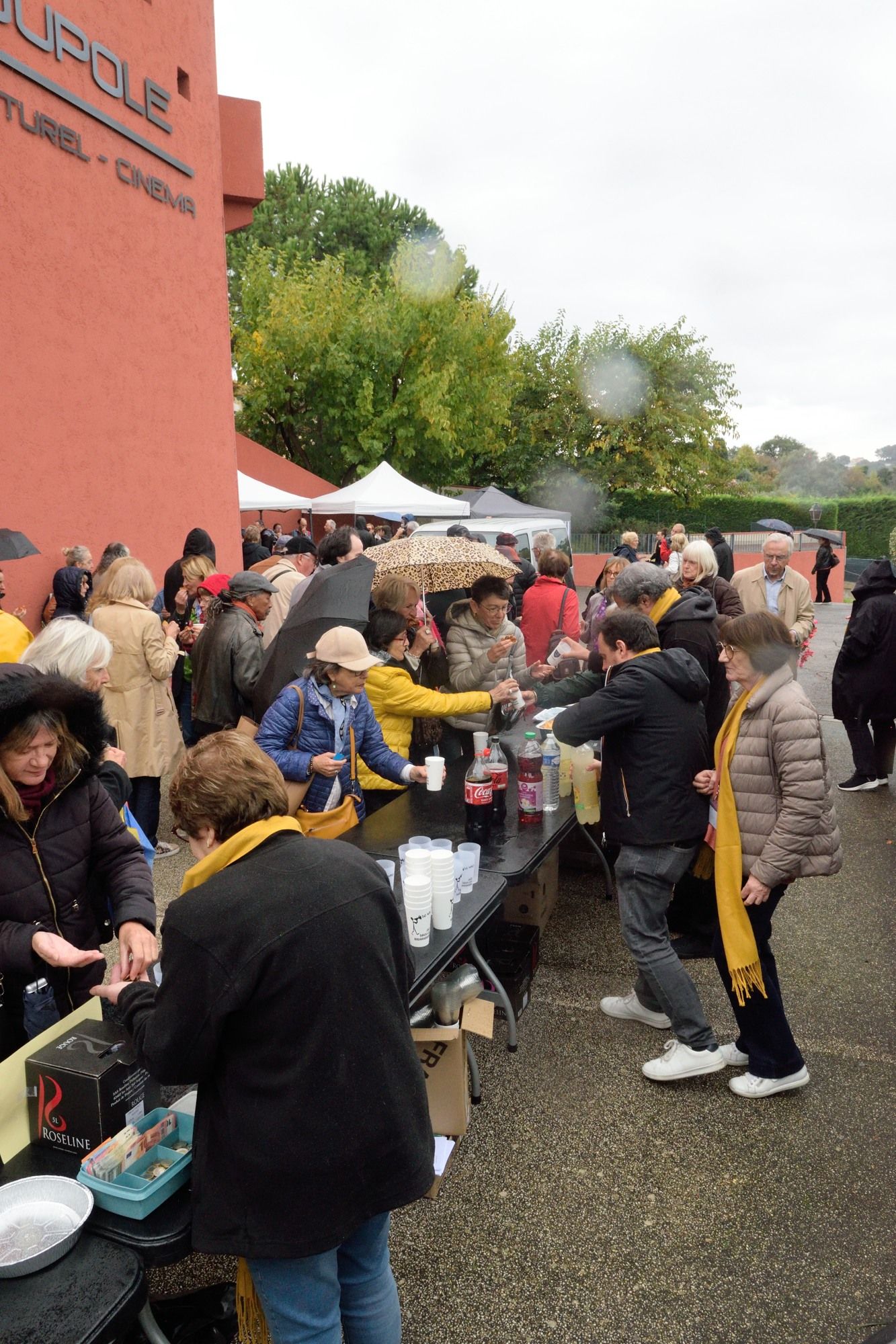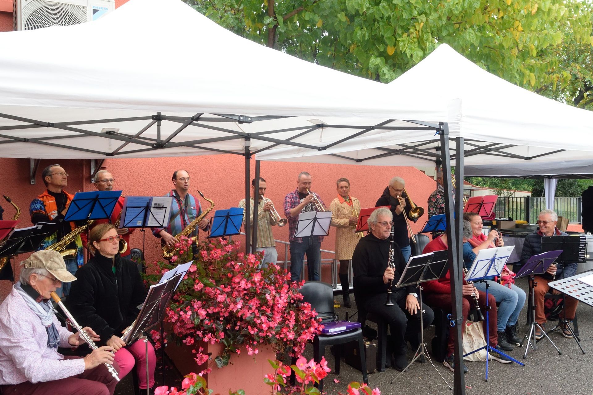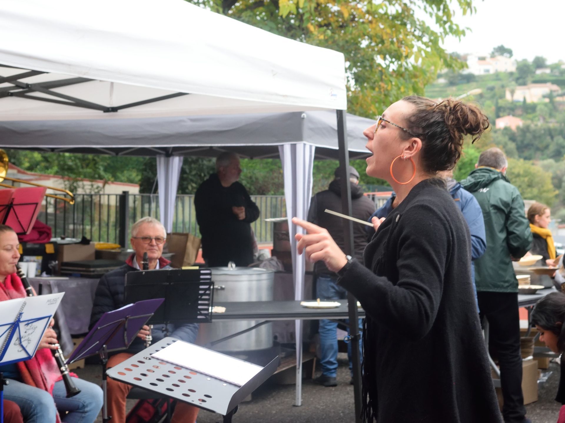 Le traditionnel apéro-léger en plein air a suivi, avec raviolis à la daube, socca, pissaladière, pizza... Au son de la musique endiablée de l'HARMONIE DES BAOUS, dirigée par Géraldine Karpp, dans une ambiance de fête malgré quelques gouttes de pluie.