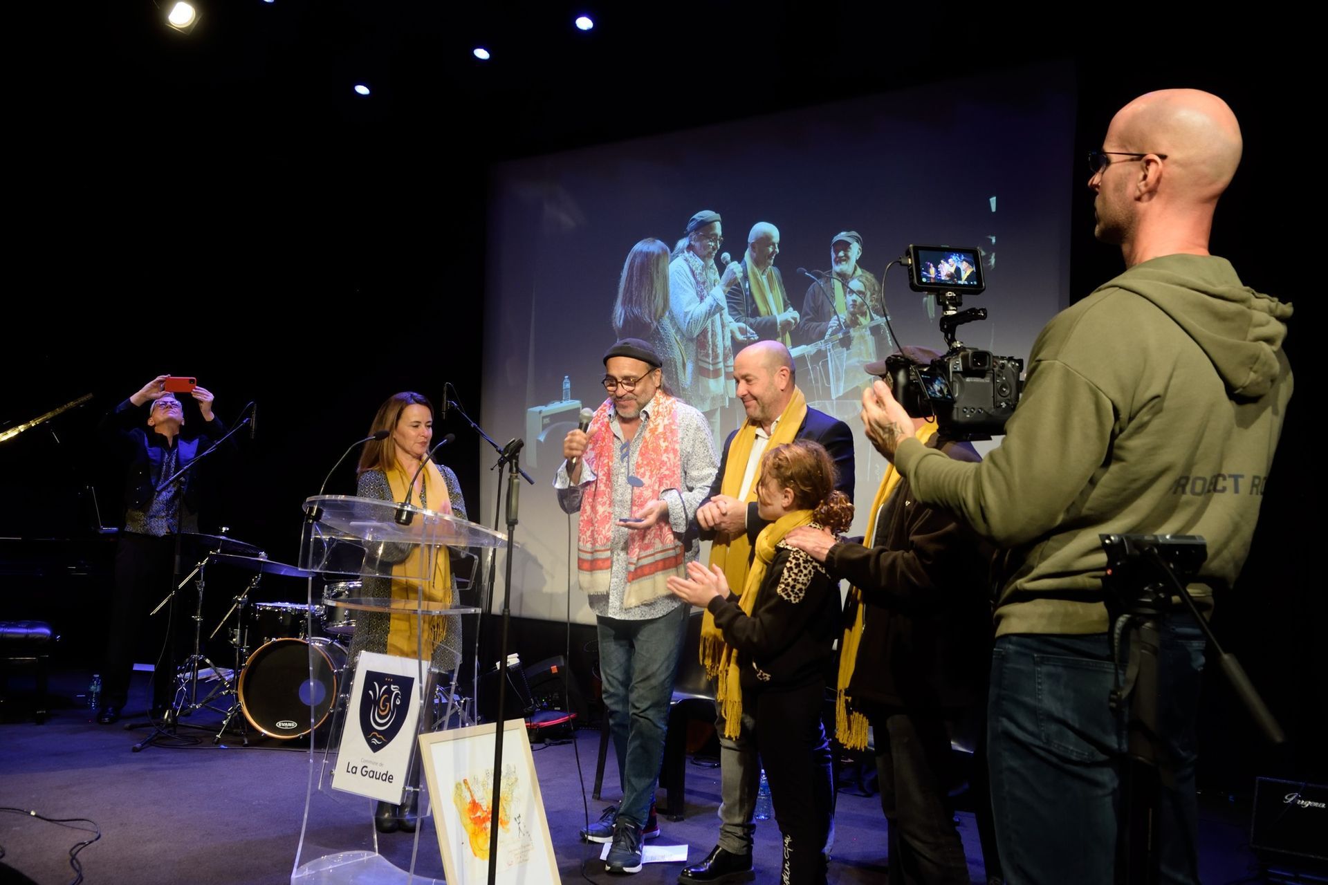 Après cette performance, le maire de La Gaude, Bruno Bettati et Manuela De Abreu Horer ont remis le TROPHEE DU JAZZ DE LA COTE D'AZUR (sculpture signée Roger Drouin) au batteur-percussionniste-compositeur-arrangeur MININO GARAY.