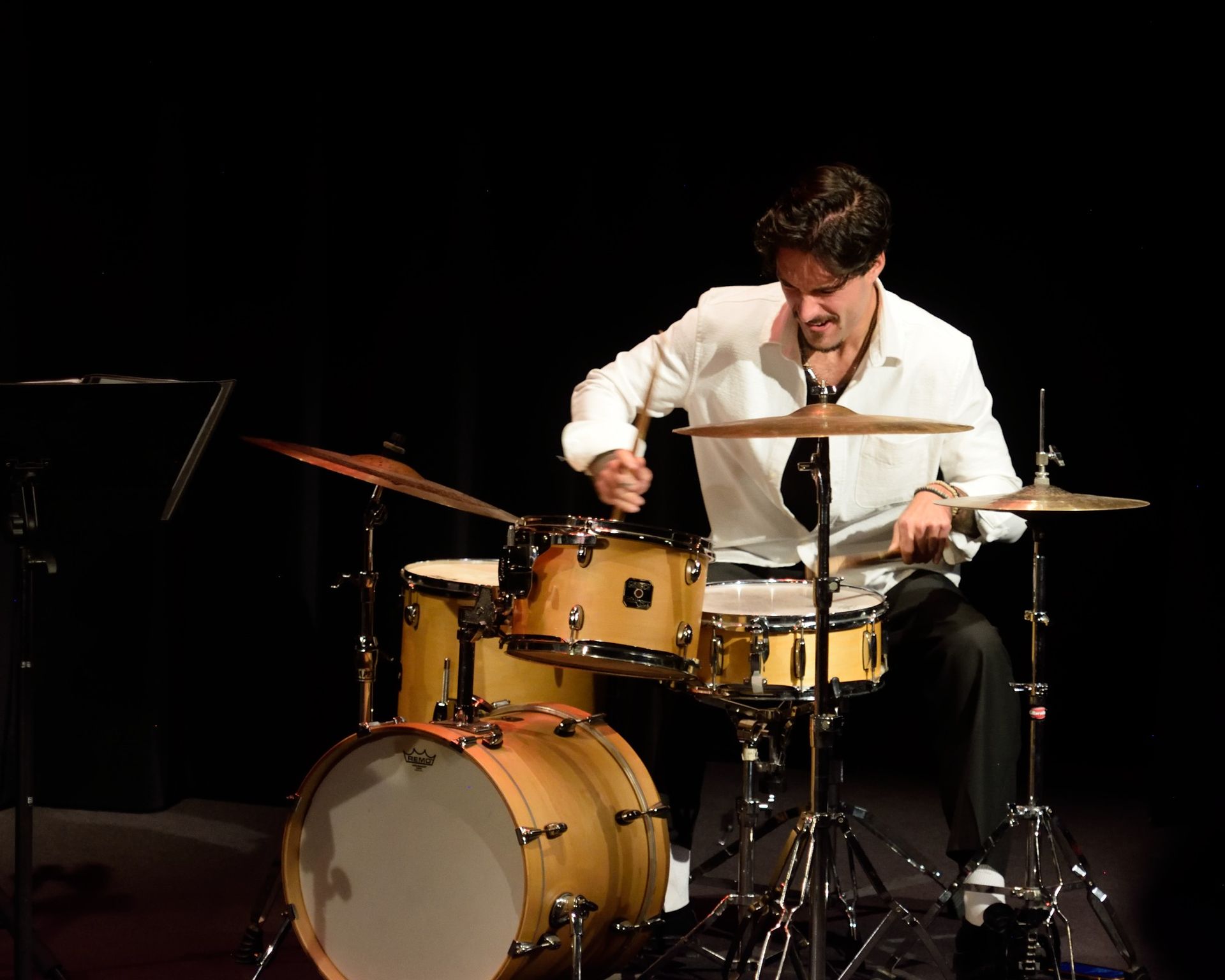 Arnoïse Jazz Power Trio, pour un set exceptionnel d'énergie et de talent. Arnoïse à la batterie, Fred d'Oelsnitz au piano et Lasha Lucaselias à la basse ont enflammé la salle de La Coupole.
