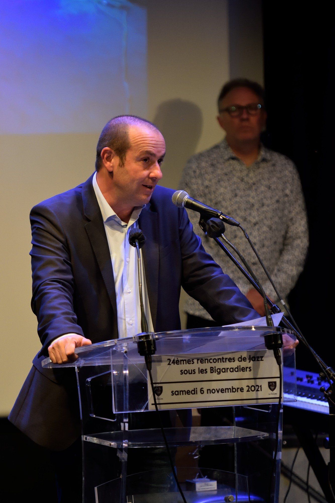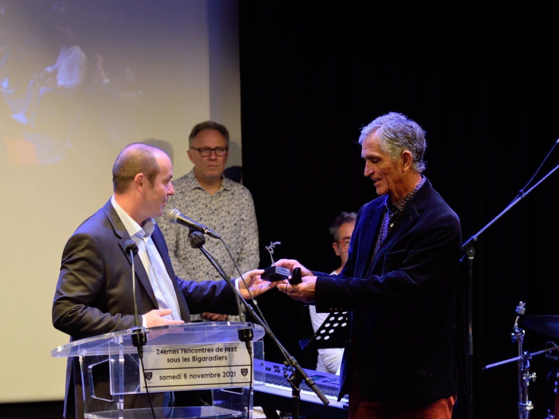 Discours du maire de La Gaude Bruno BETTATI et remise du Trophée d'honneur du jazz à Roger DROUIN