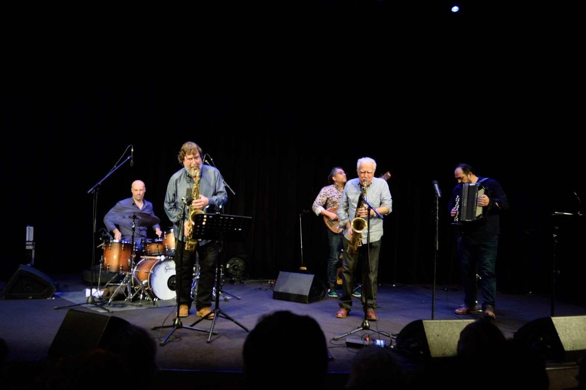 COMPAGNIE SO WHAT (Alex Benvenuto, clarinette basse; Thomas Guillemaud, saxophone soprano; Laurent Lapchin, trompette; José Serafino, guitare; Jean-Marc Laugier, contrebasse; Cédric Fioretti, batterie)