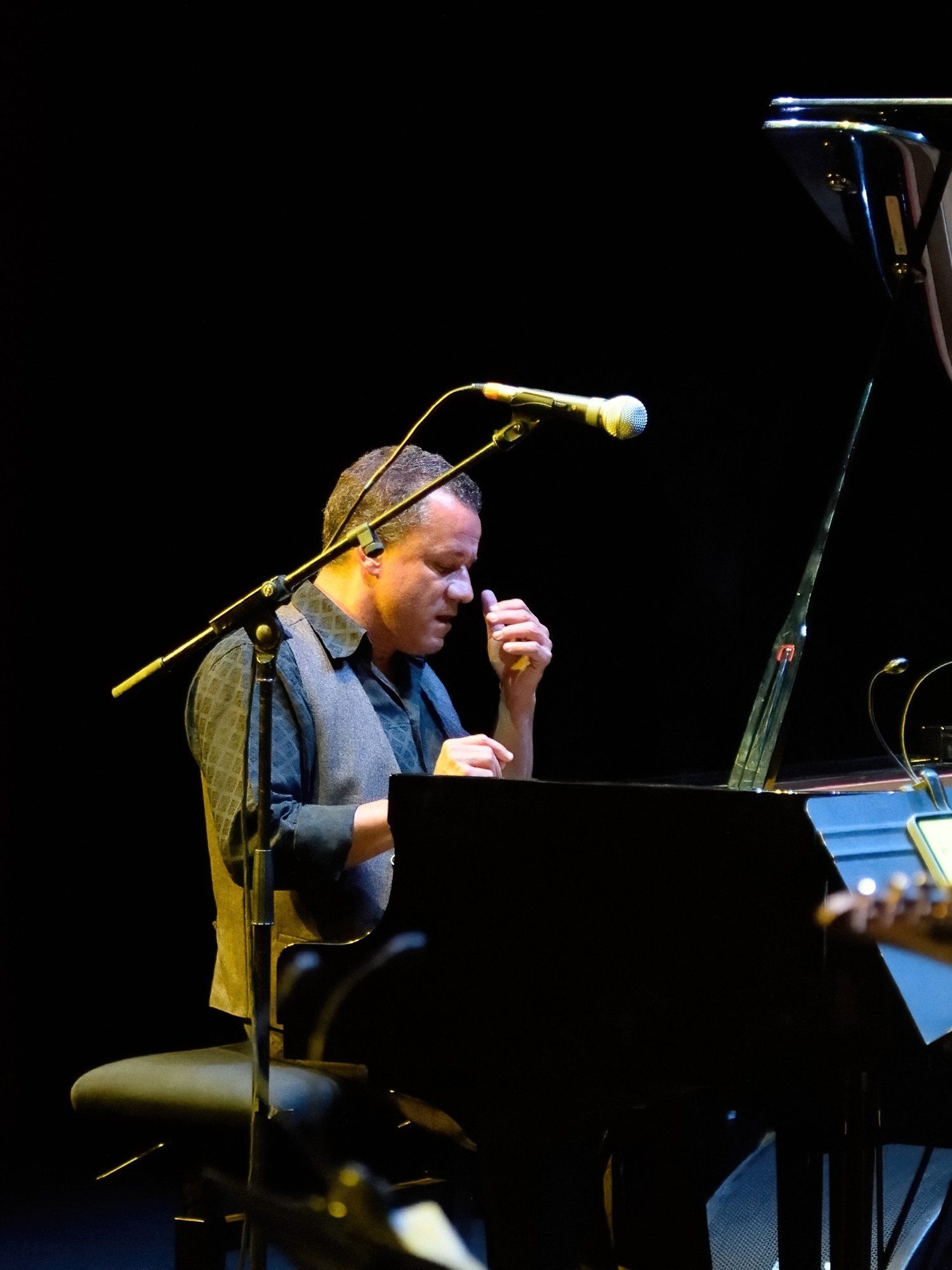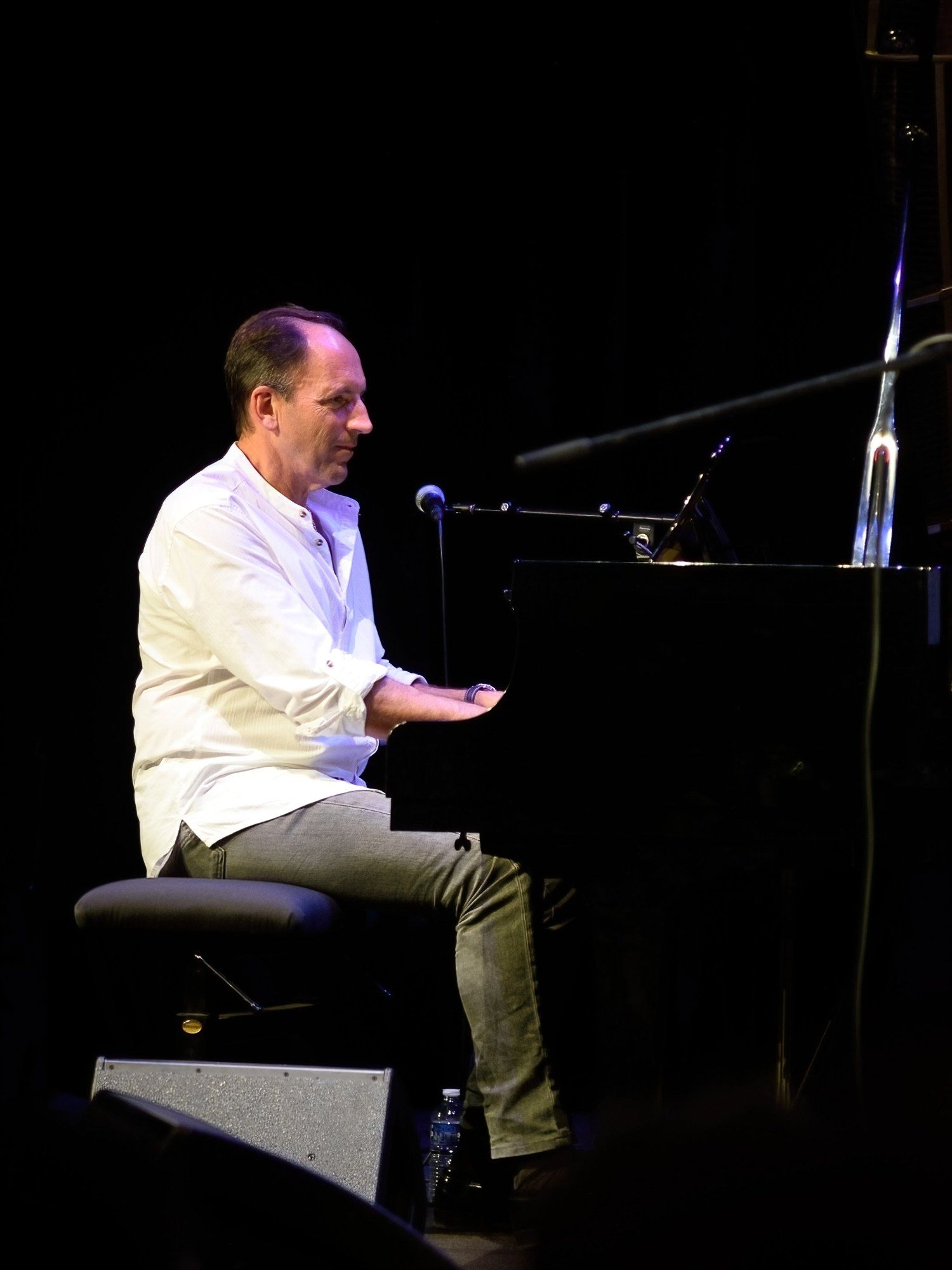 En première partie, l’équipe chaleureuse du Pimbo Jazz Quintet (Dominique, sax; Pierre, guitare; Isabelle, clavier; Philippe, basse; Bertrand-Olivier, batterie) nous a offert un pan de musique « live », illustration parfaite de cette rencontre entre la musique des vedettes internationales et ce que le jazz a de plus chaleureux dans ses expressions régionales, marque de fabrique du festival « Jazz sous les Bigaradiers ».
