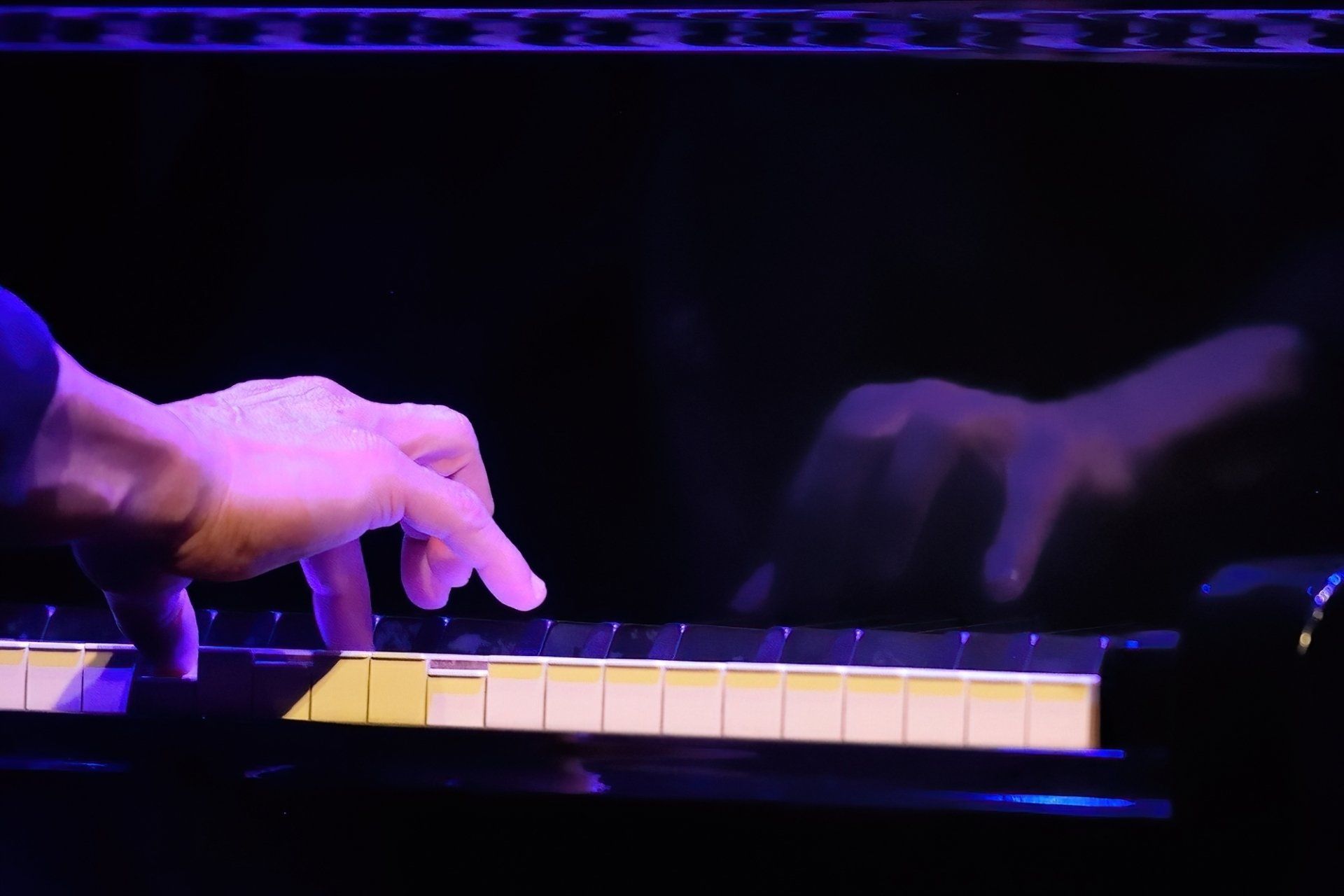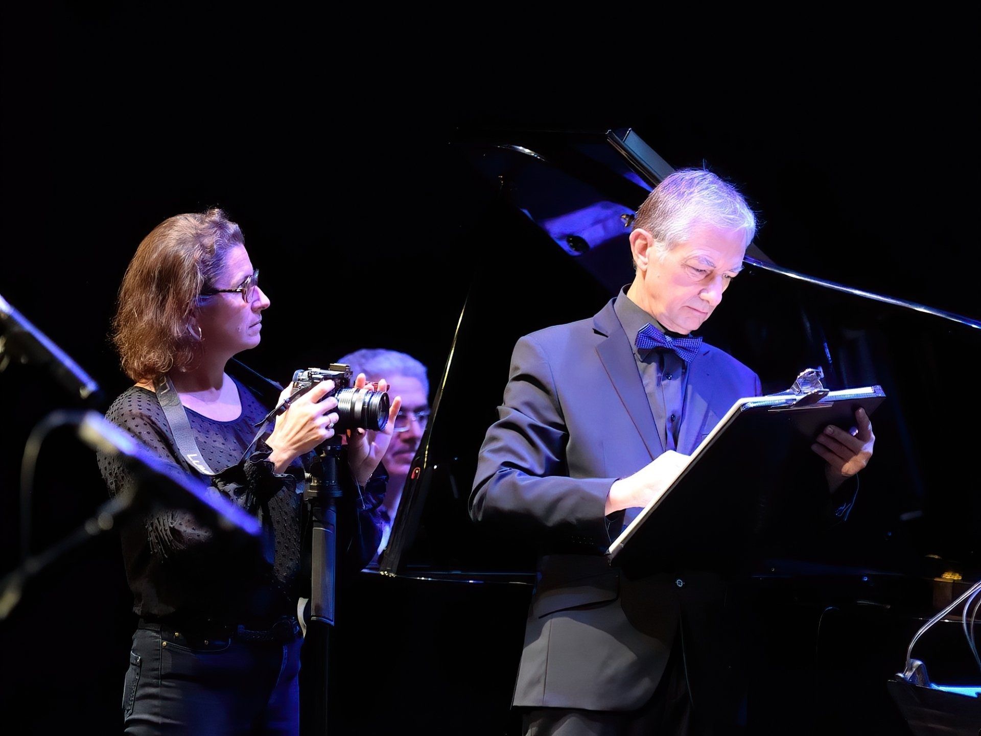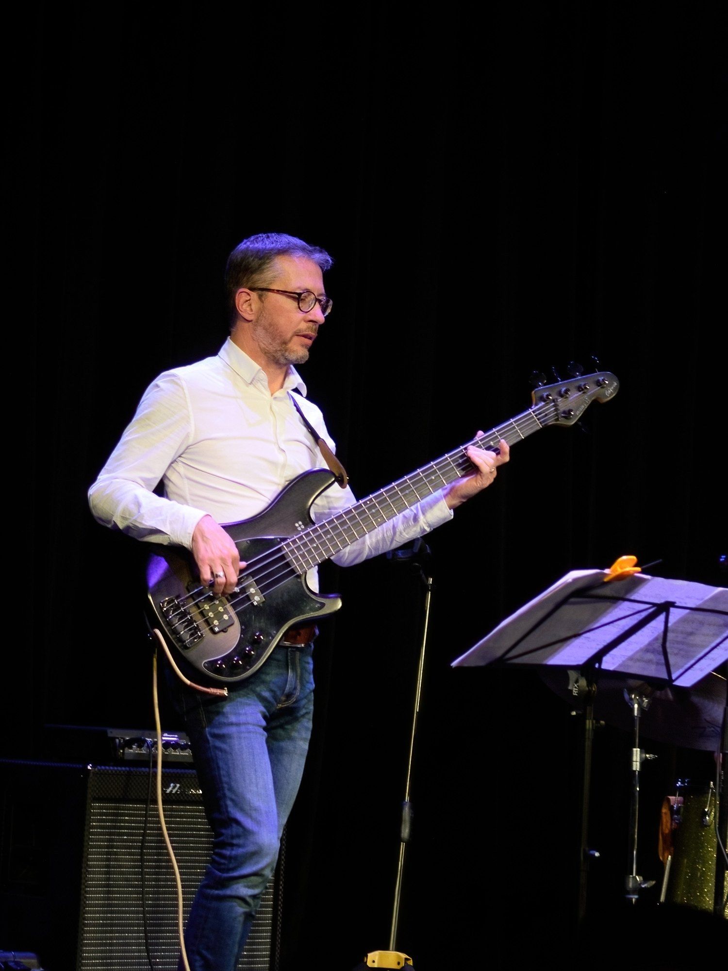 Pour la deuxième partie de soirée, changement de programme : nous avions prévu d'accueillir le spectacle "Novecento", s'appuyant sur les textes d'Alessandro Baricco, métaphore géniale sur la musique. Les textes devaient être dits par Frank Cassenti, par ailleurs réalisateur de films sur le jazz et directeur du festival Jazz à Porquerolles, et illustrés par un trio magique de musiciens internationaux, à la sensibilité à fleur de peau : Jacky Terrasson au piano, Nguyên Lè à la guitare et Michel Benita à la contrebasse. Malheureusement, le Covid est passé par là et Frank Cassenti n'a pu être présent. Au pied levé, les trois musiciens nous ont concocté une partie uniquement musicale; et comme toujours quand des génies de la musique sont amenés à se surpasser, le résultat a été époustouflant, tout en finesse, profondeur, intensité, complicité... Quelle soirée !