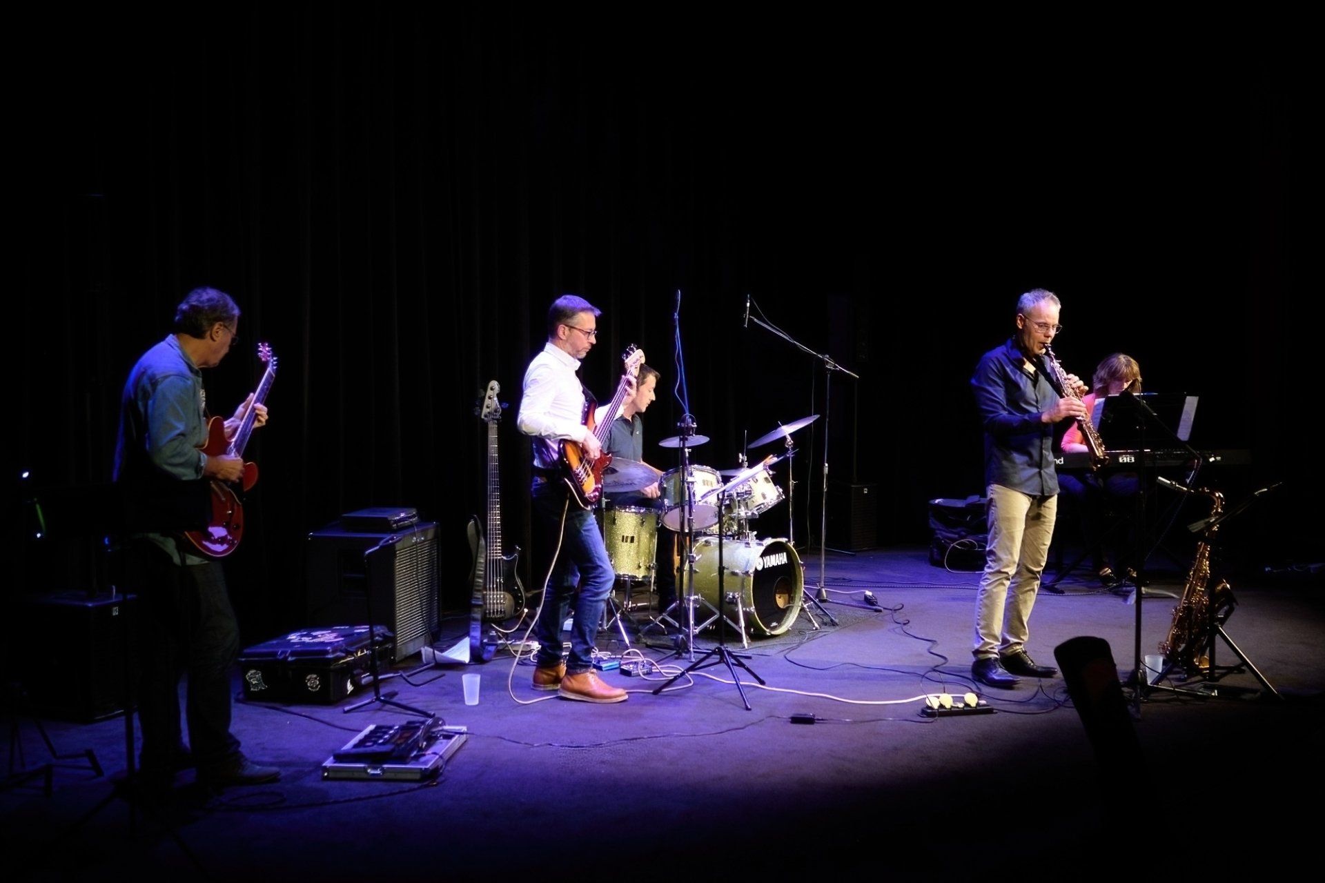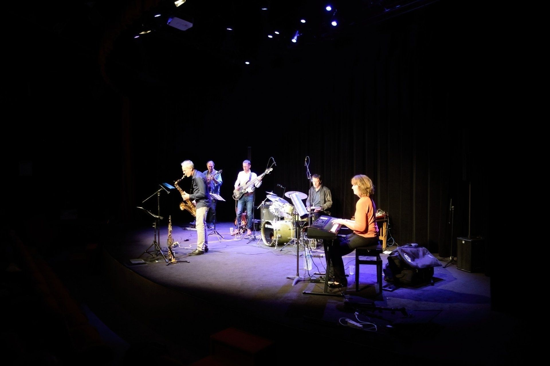Pour cette première soirée dans la grande salle, en première partie, la COMPAGNIE SO WHAT (Alex Benvenuto, clarinette basse, compositions; José Serafino, guitare, compositions; Thomas Guillemaud, sax soprano; Laurent Lapchin, trompette; Jean-Marc Laugier, contrebasse; Cédric Fioretti, batterie) avait sorti le grand jeu et dévoilé son nouveau répertoire, mêlant les influences d'Europe de l'Est, d'Ethiopie, latinos ou funkies, et faisant partager sa joie de jouer ensemble.