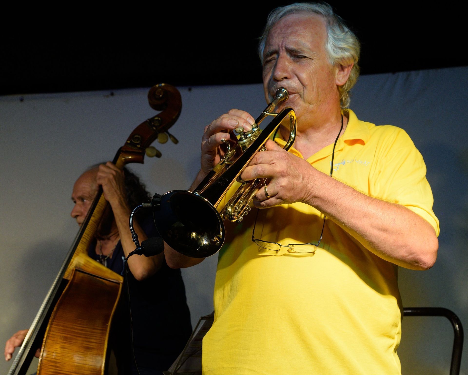 Les élections législatives ont quelque peu perturbé le déroulement des concerts du "off" cette année à Porquerolles : la "Maison du Commandant" devait en effet les accueillir dans ses jardins mais le bâtiment avait été fermé pour installation d'un bureau de vote... Le samedi 6, le concert de la Compagnie So What s'y est tout de même déroulé, mais sans chaises pour le public. Le lendemain, nous avons été aimablement accueillis par la terrasse du restaurant "Côté Port", dans des bien meilleures conditions. Quoi qu'il en soit, c'est avec grand plaisir que le quartet a déroulé ses thèmes, dont le "Guy Dance" du batteur Aldo Romano, figure emblématique du festival. Un grand merci aux organisateurs et aux bénévoles qui ont dû jongler avec les circonstances !