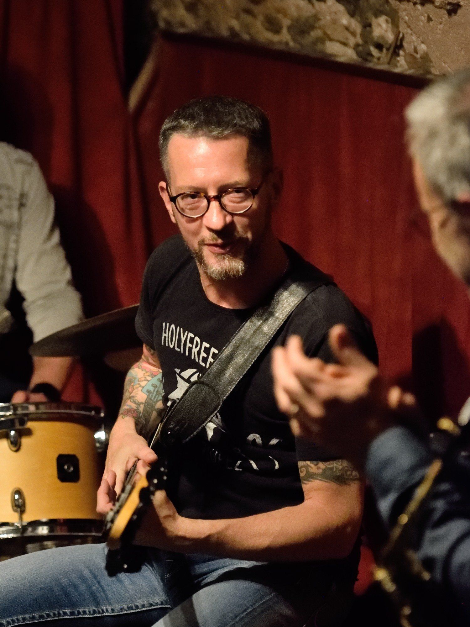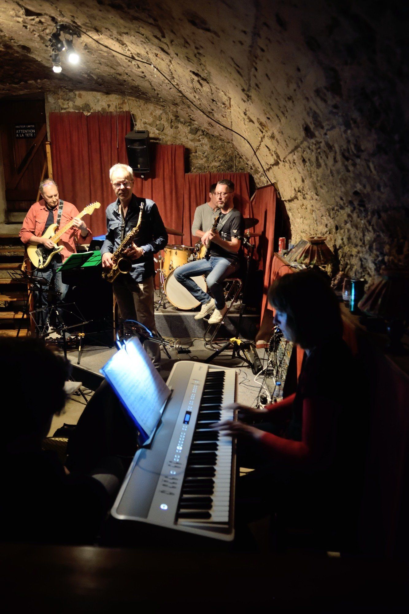 La soirée s'est déroulée comme toujours en deux partie, avec un premier set de la COMPAGNIE SO WHAT, puis un set du groupe invité. Ce mois-ci, nous recevions le PIMBO JAZZ QUINTET (Dominique, sax; Pierre, guitare; Isabelle, clavier; Philippe, basse; Bertrand Olivier, batterie). Encore une super soirée, chaleureuse comme on les aime, pleine de sourires, d'amitié et de bonne musique !